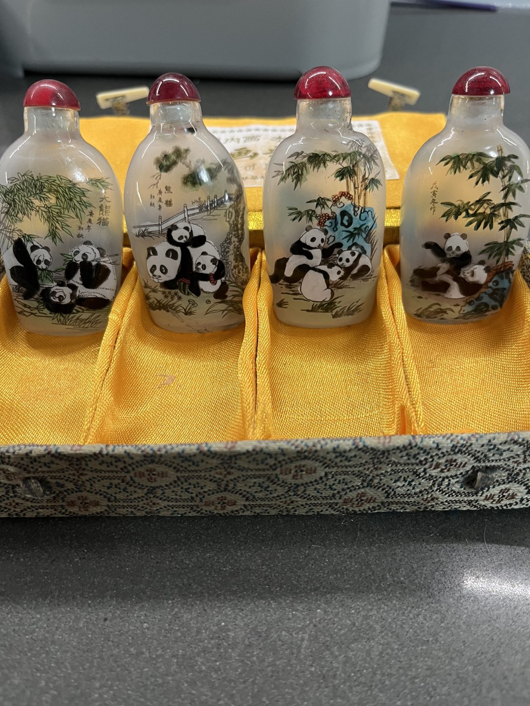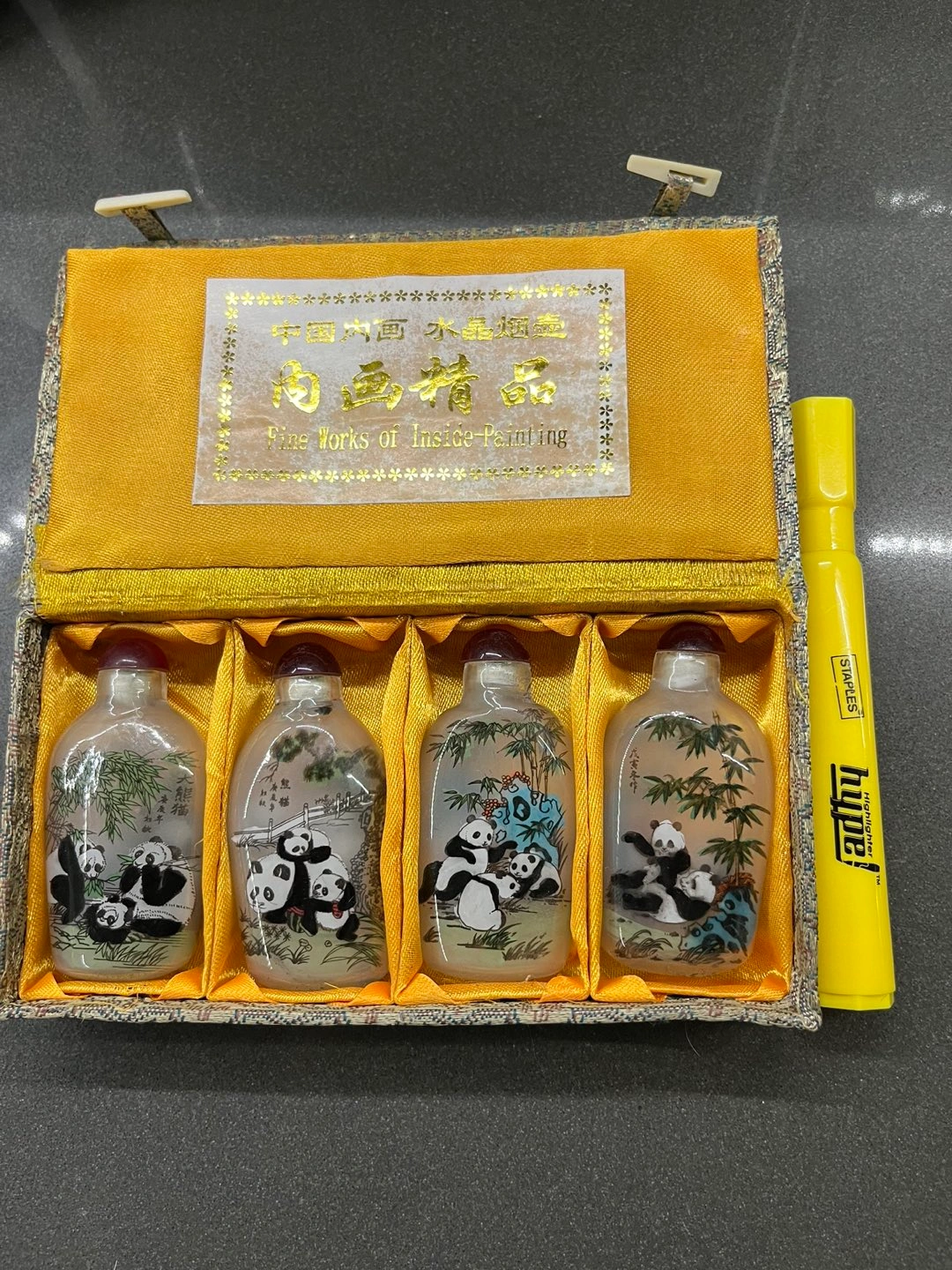 Beautiful and unique hand painted little bottles. Painted from the inside. Vintage.🌱 See last pic for size reference!