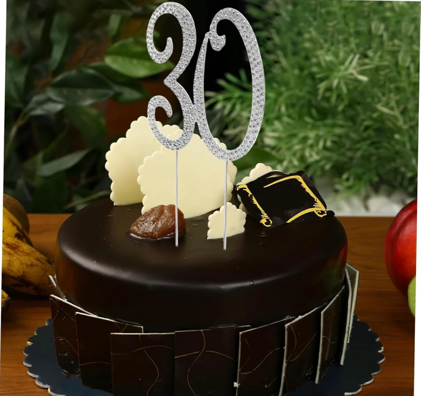 Add a touch of sparkle to your 30th birthday celebration with this rhinestone number 30 cake topper! It's perfect for decorating your cake and making it extra special for the big day