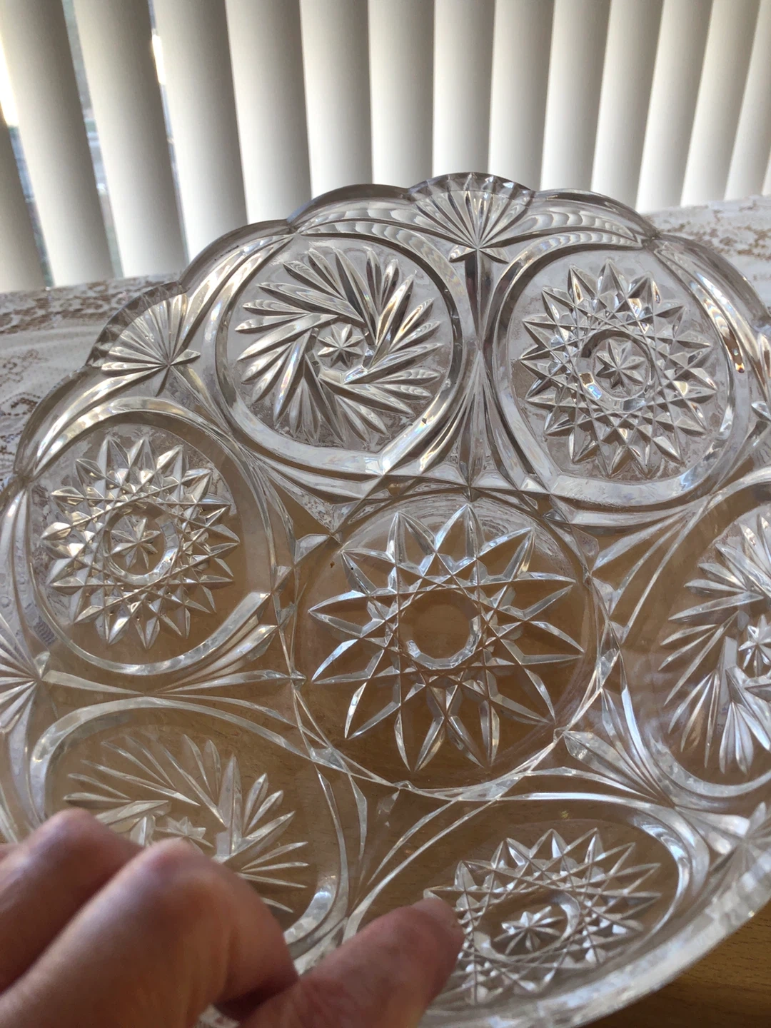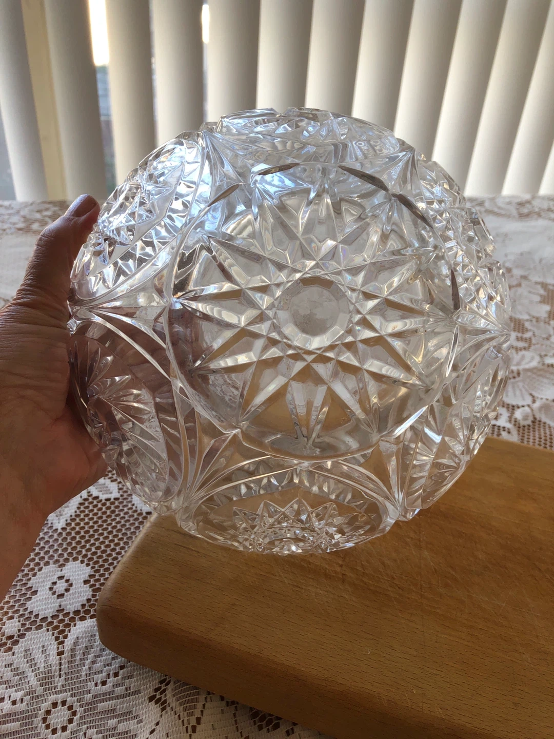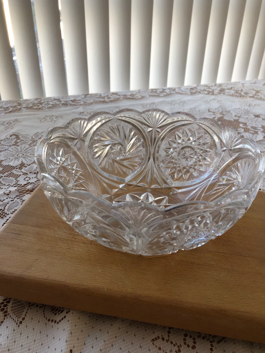 Beautiful crystal bowl with a starburst pattern, perfect as a decorative piece for your home. It's in great condition and ready to add a touch of elegance to any room