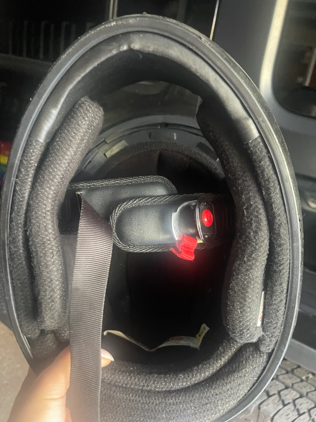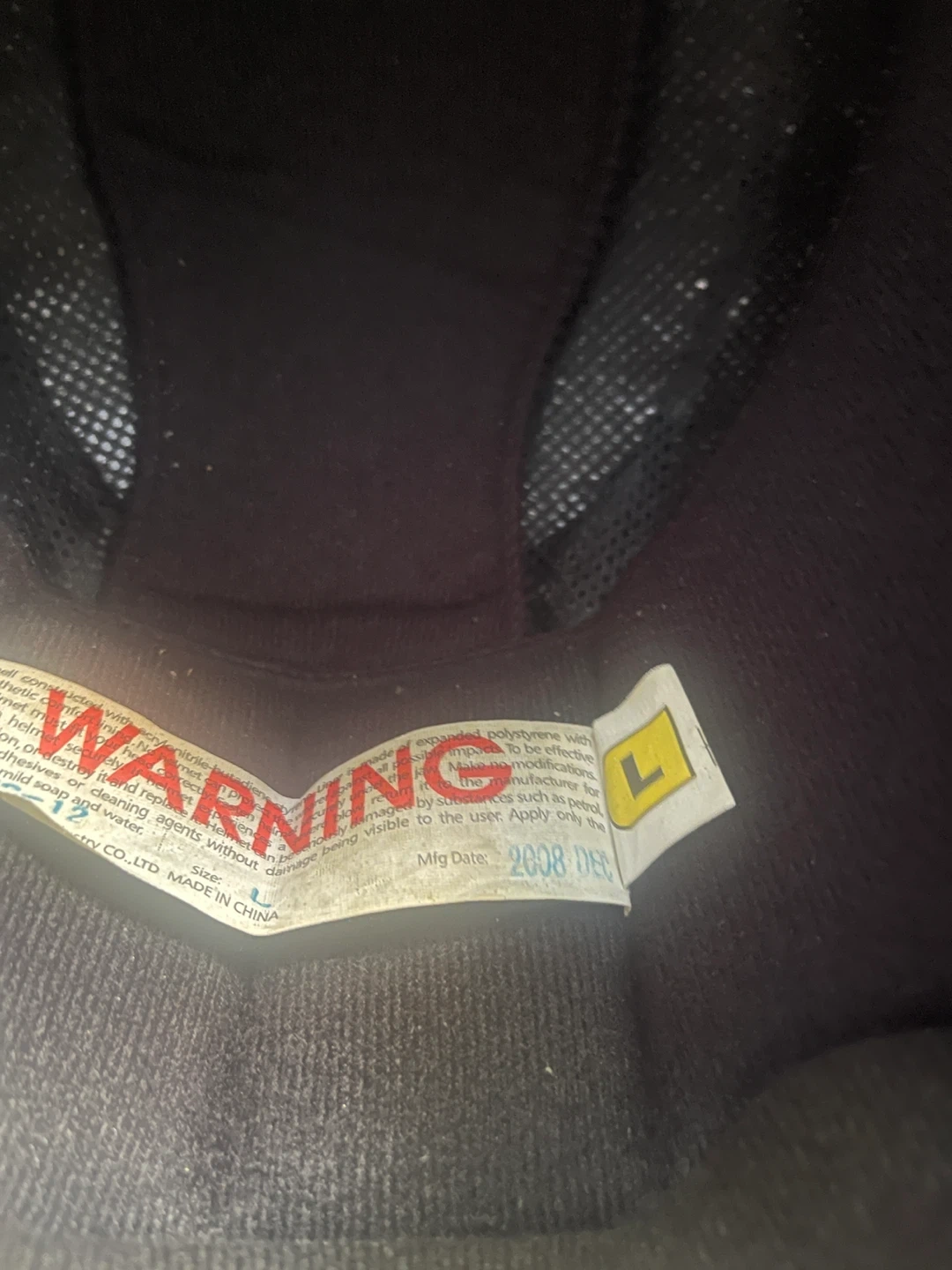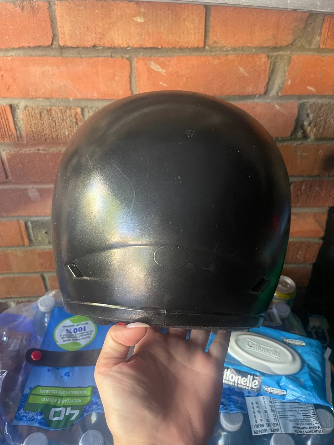Selling a black motorcycle helmet. It's in good condition and ready for the road! Perfect for anyone looking for a reliable helmet.