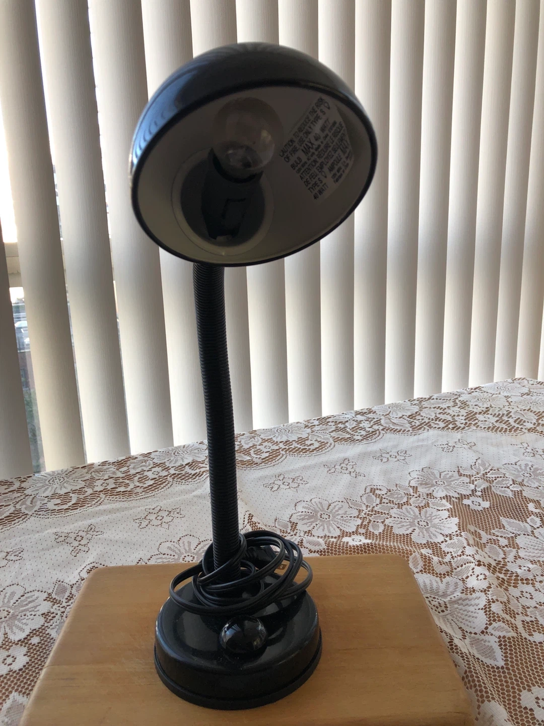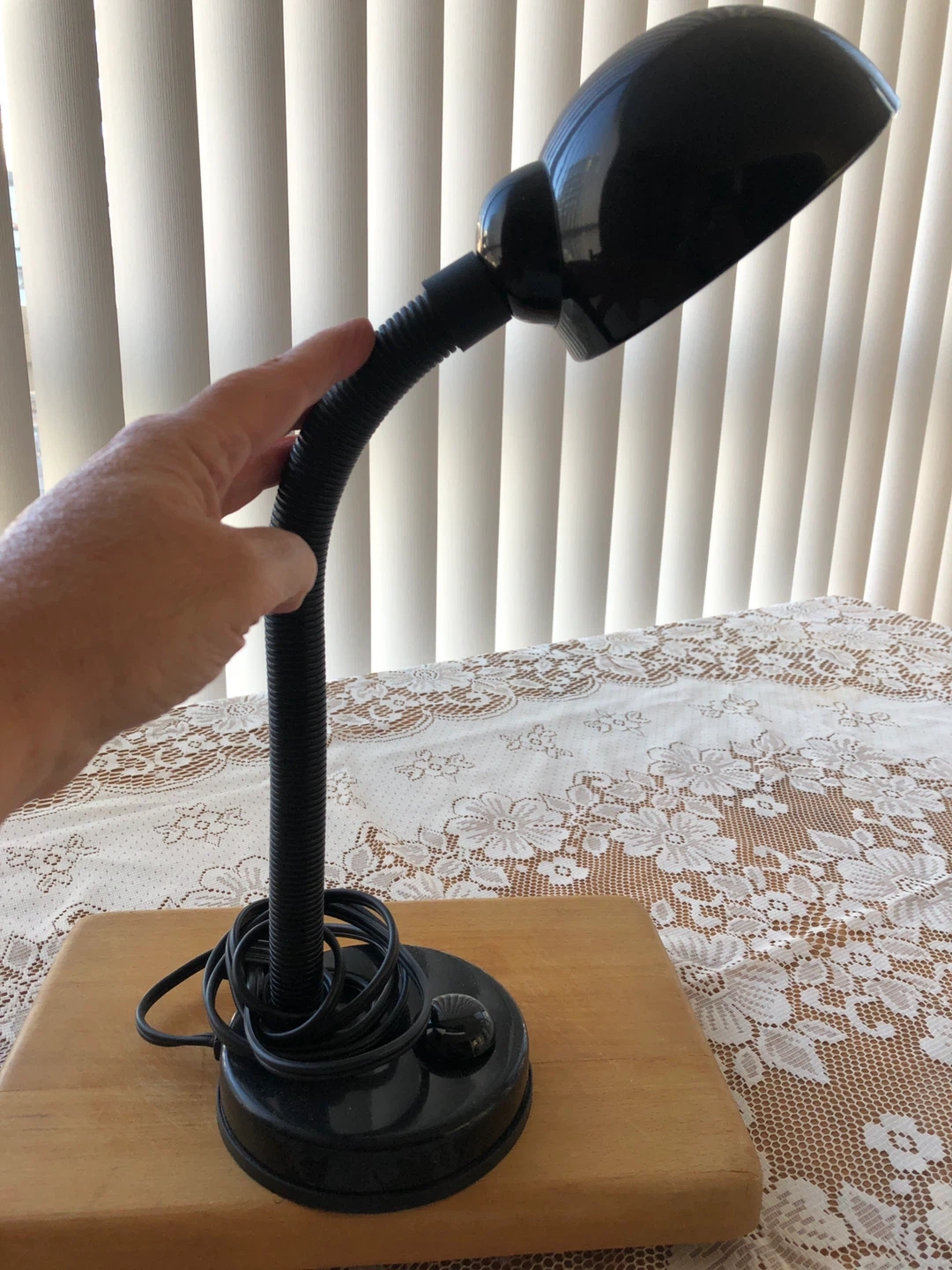 Selling a black desk lamp in good condition. It features a flexible gooseneck and a rotary dimmer switch on the base. The model number is 05048806. Perfect for a desk or bedside table!