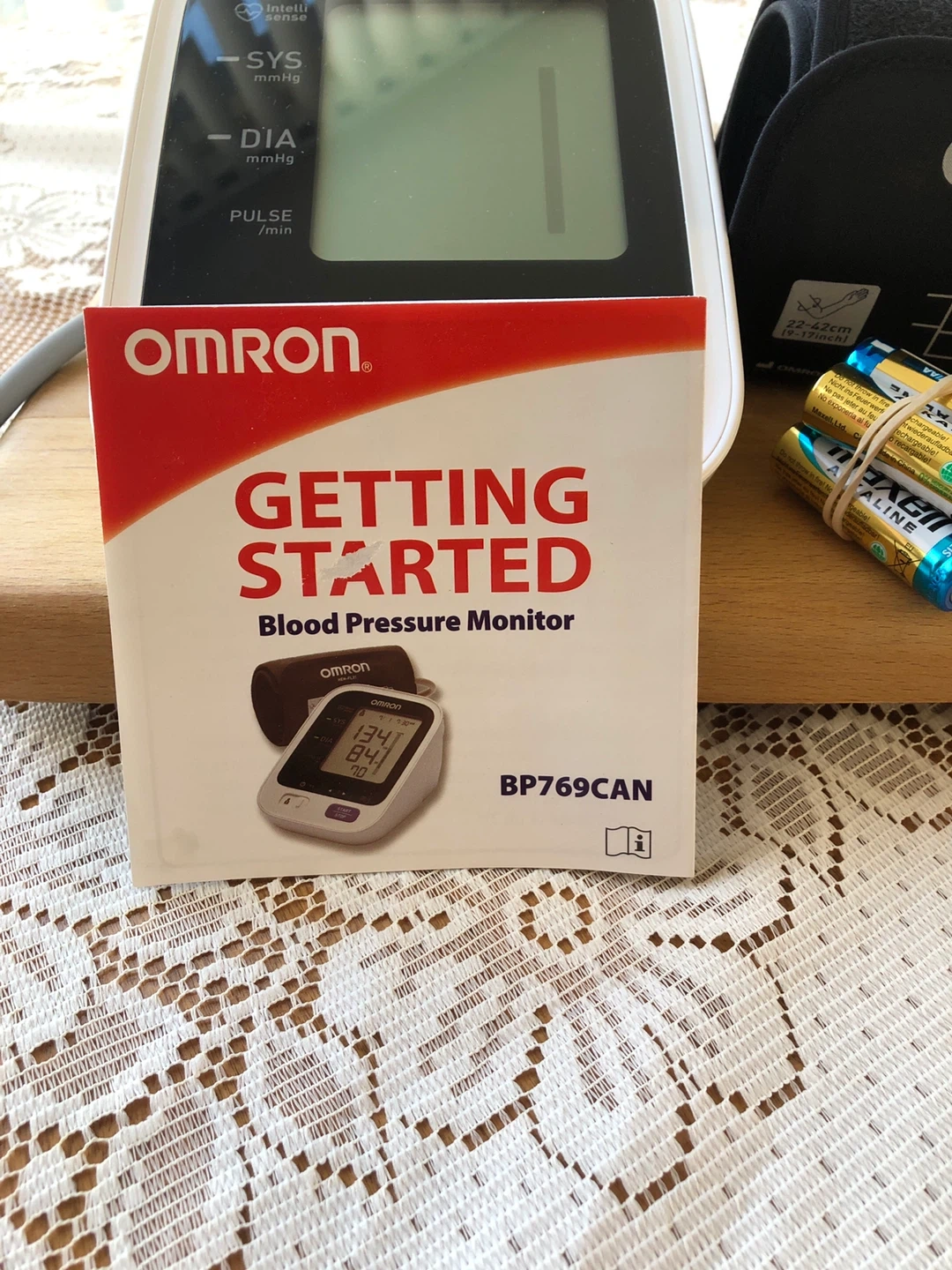 Selling an Omron BP769CAN blood pressure monitor. It comes with the HEM-FL31 cuff that fits arm circumferences of 22-42cm (1/2 inch). Also includes the instruction manual and batteries so you can get started right away!