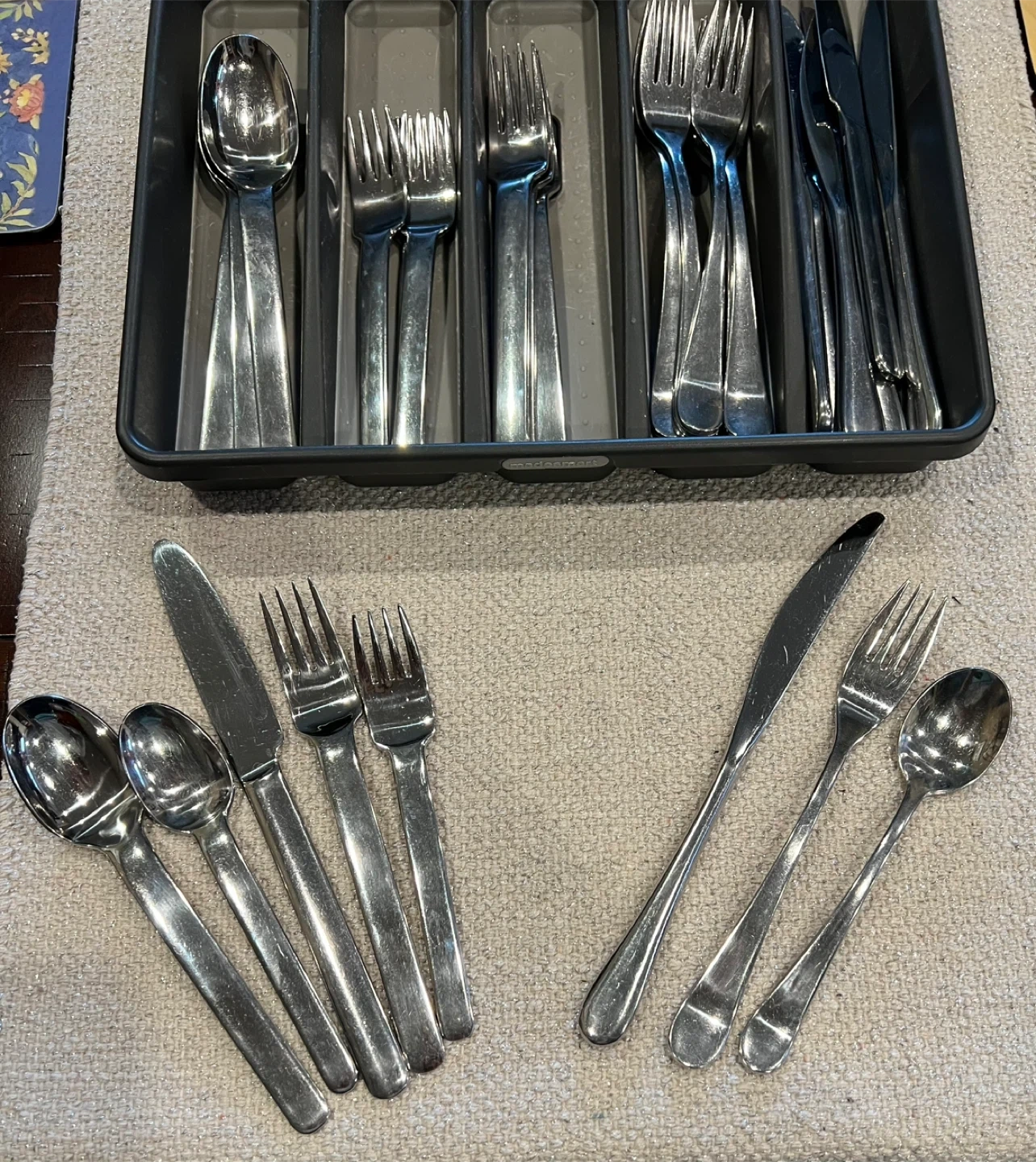 There are 2 sets (both of them are incomplete) 37 pieces all together Great cutlery for someone starting over or anyone wanting to add more cutlery to their existing set Perfect for every day use Great clean condition Cutlery tray is included (fits in a standard drawer) Asking $20 for all Interested? Message me and please check my other listings…