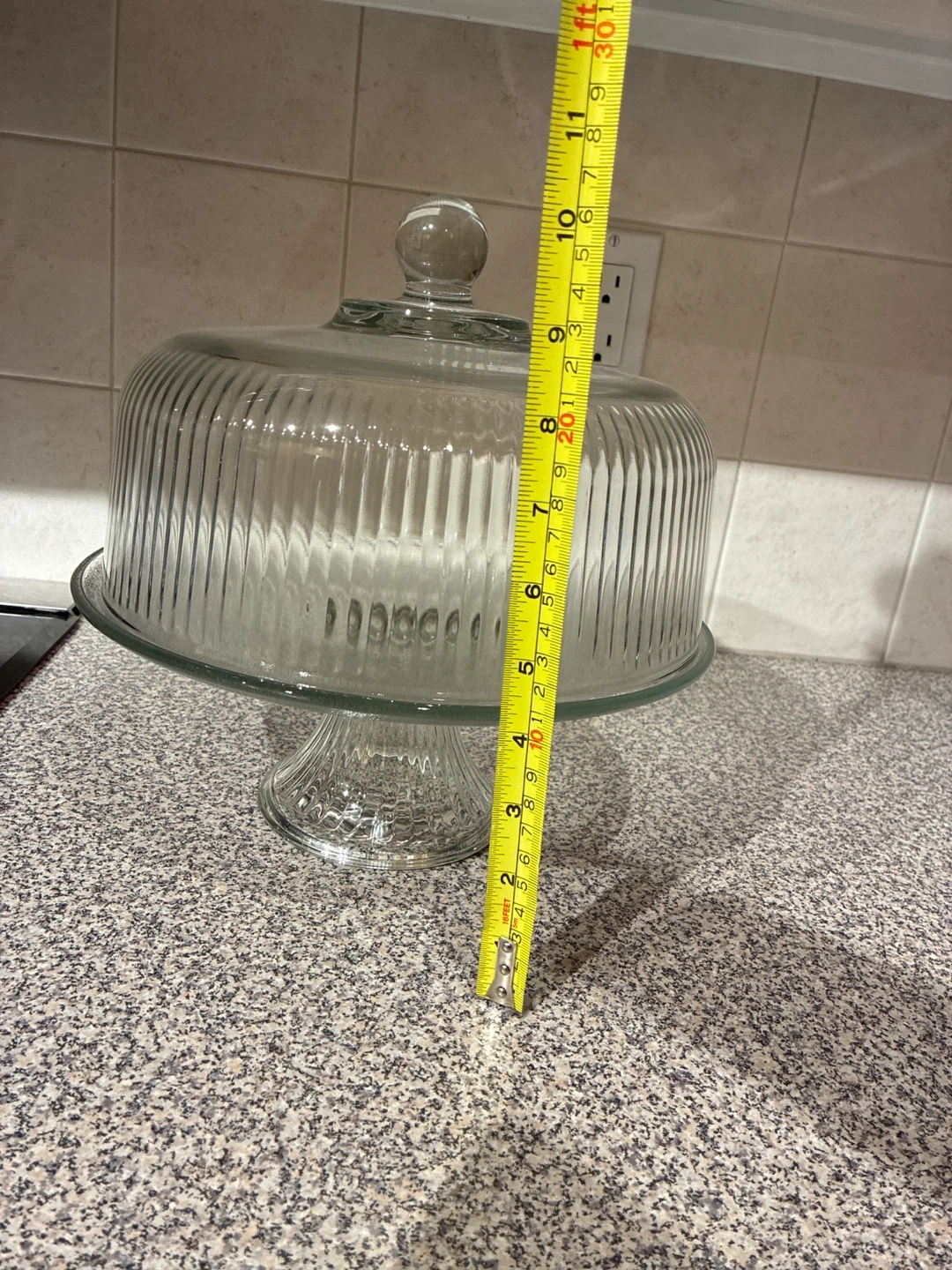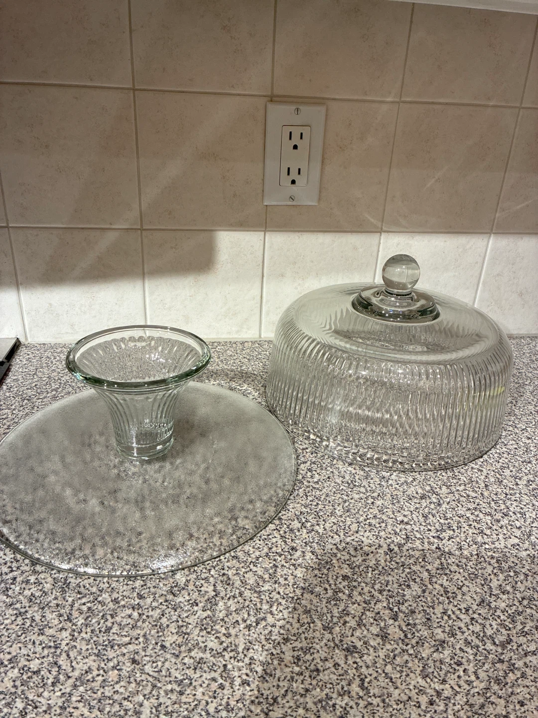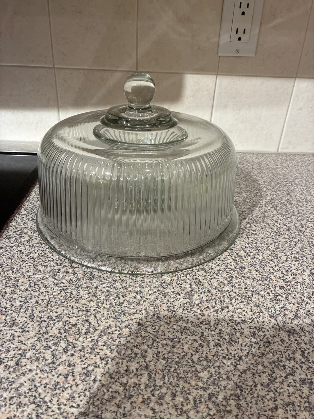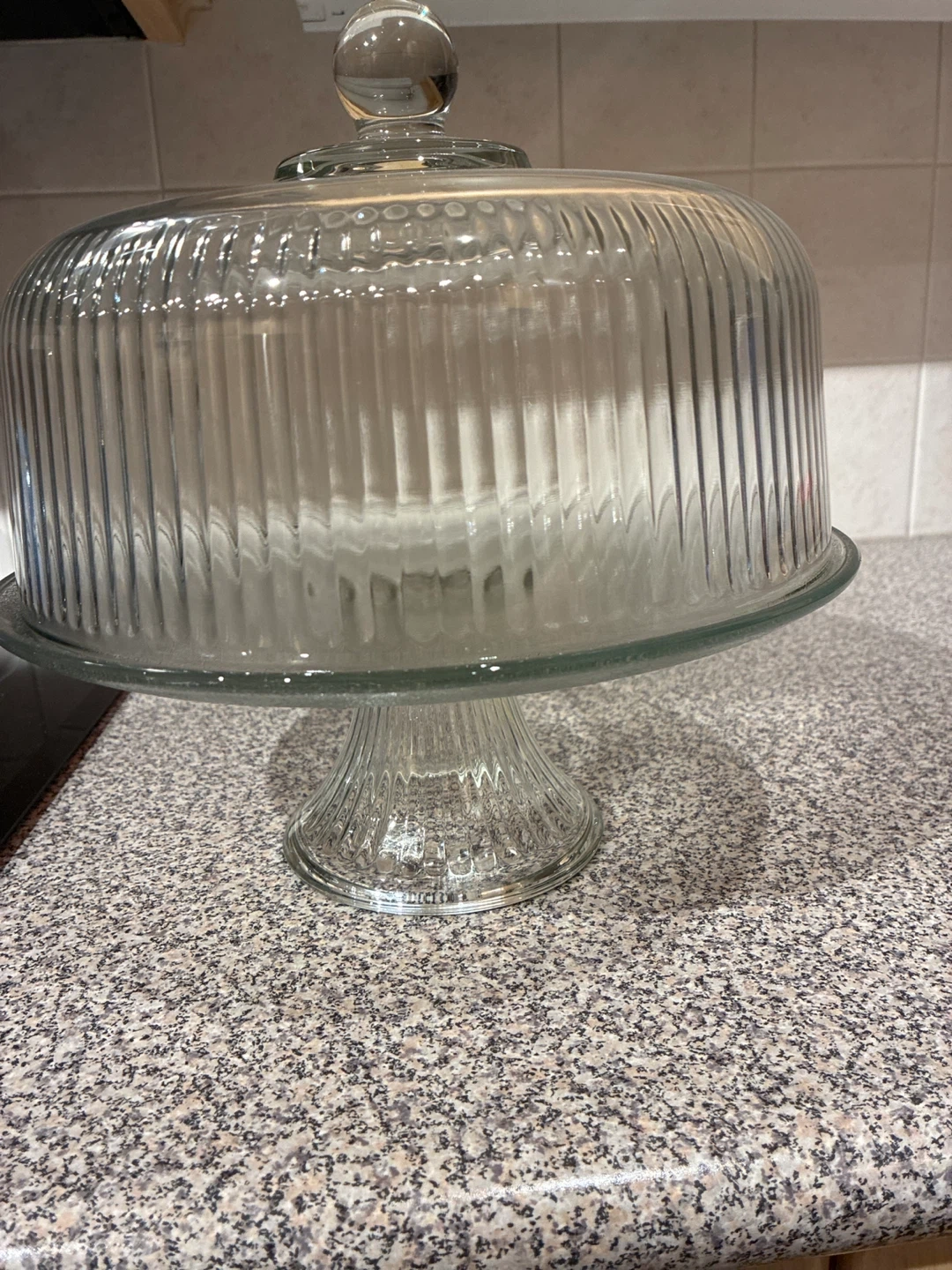 Glass cake stand with a dome cover! - excellent condition and perfect for displaying your baked goods. - stand measures 12 inches in diameter and the dome is 7 inches tall - firm price—cash only - pick up Wellesley or college subway