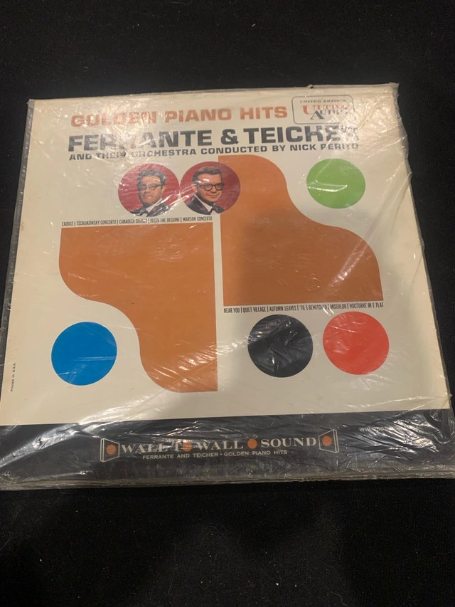 Relive the golden age of piano with this Ferrante and Teicher Golden Piano Hits LP. Though previously enjoyed, this record is in good condition, ready to fill your home with classic melodies. Additional details include: * Artists: Ferrante & Teicher * Title: Golden Piano Hits * Conductor: Nick Perito * Sound: Wall to Wall Sound This LP offers a nostalgic journey through timeless tunes. If you're seeing this ad, yes, it’s still available, ready to find a new home and spin some joy!