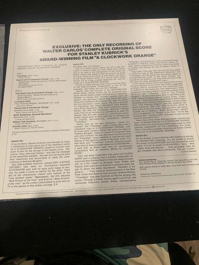 Offered here is a used Walter Carlos' Clockwork Orange vinyl record, a must-have for any collector of classic soundtracks and electronic music. This vintage record captures the innovative sounds of Walter Carlos' score for Stanley Kubrick's iconic film. The condition is good, showing some wear that is consistent with its age. * Artist: Walter Carlos * Title: Clockwork Orange * Format: LP * Genre: Soundtrack, Electronic * Record Label: Columbia * Year: 1972 Based on other sales I've seen, I'm pricing it at $35, which reflects the condition and desirability of this album. If you see this ad, the vinyl is ready to travel to a new home and share its sonic treasures.