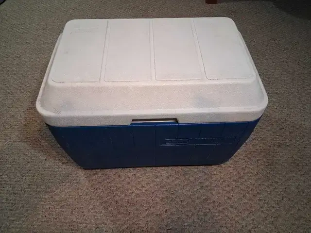 Keep your drinks and snacks chilled on the go with this Coleman cooler! This sturdy cooler is used, and still ready for your next picnic, camping trip, or tailgate party. Perfect for keeping all your refreshments ice-cold. * Durable construction * Classic design * Easy to carry Ready to keep your beverages frosty? This cooler is looking for a new home.