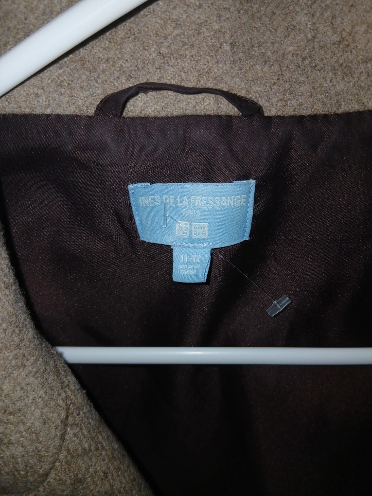 Cozy kids coat from Ines de la Fressange Paris in collaboration with Uniqlo! This stylish coat is in great shape and ready for a new home. Size 11-12.