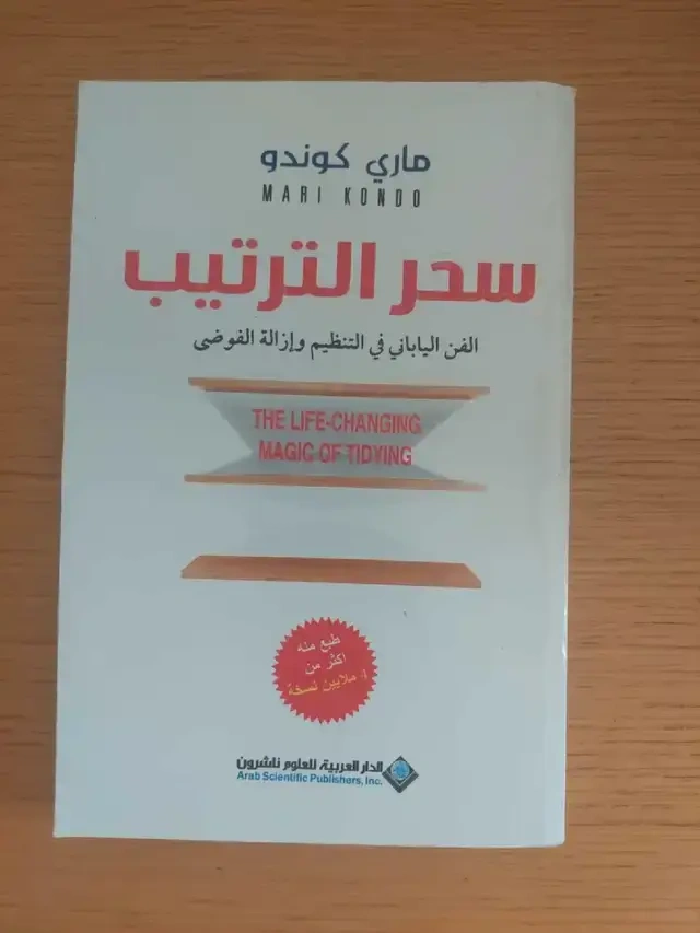 Selling an Arabic edition of "The Life-Changing Magic of Tidying Up" by Mari Kondo, offering insights into the Japanese art of decluttering and organizing,
