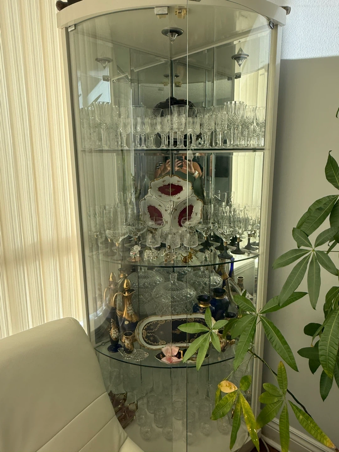 Selling a glass display cabinet, perfect for showing off your favourite collectibles or glassware! It's in great shape and ready to find a new home. It has a curved front and multiple shelves to maximize display space