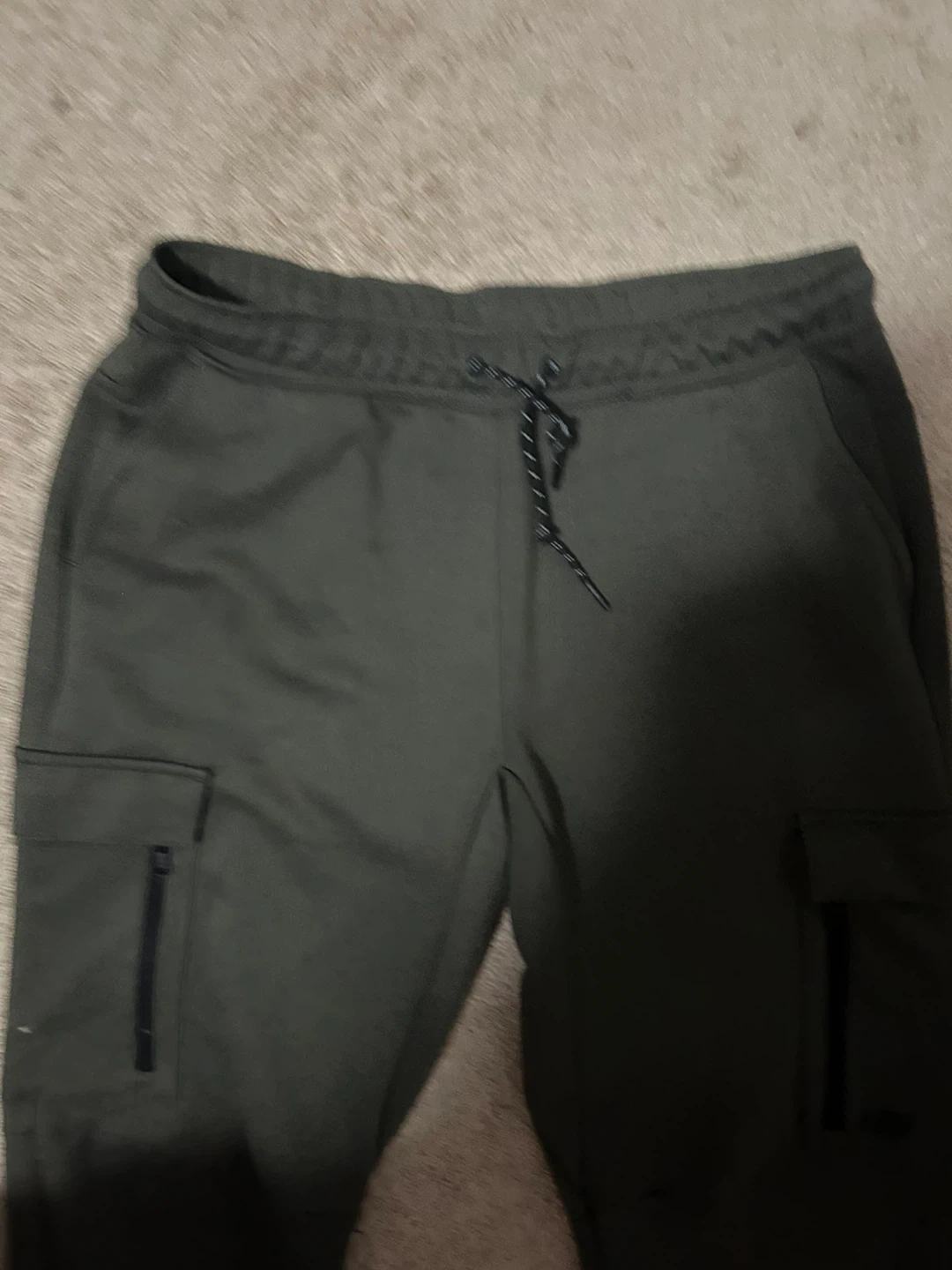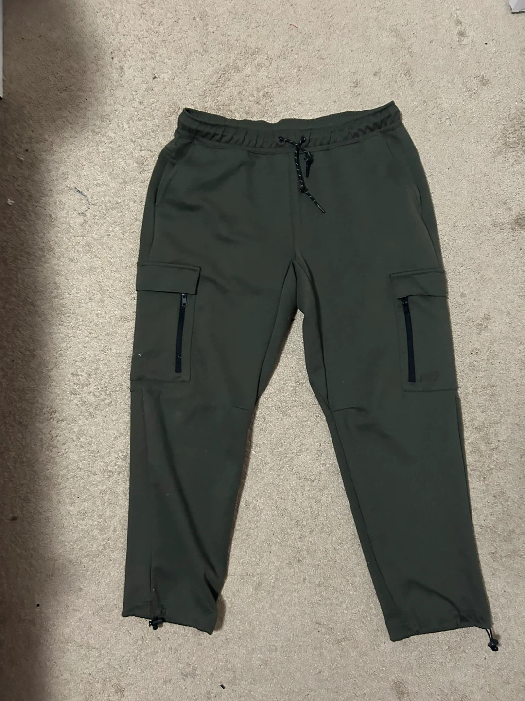 Selling a pair of New Balance cargo joggers in olive green! They have a comfortable fit and stylish design, perfect for everyday wear or workouts. Features include cargo pockets and an adjustable drawstring waist