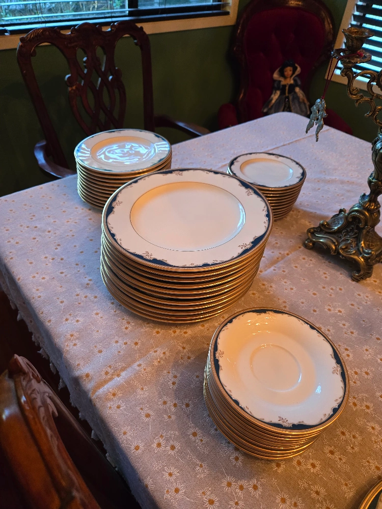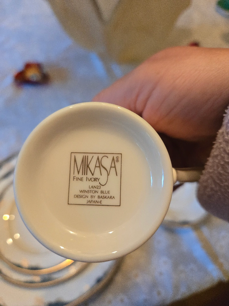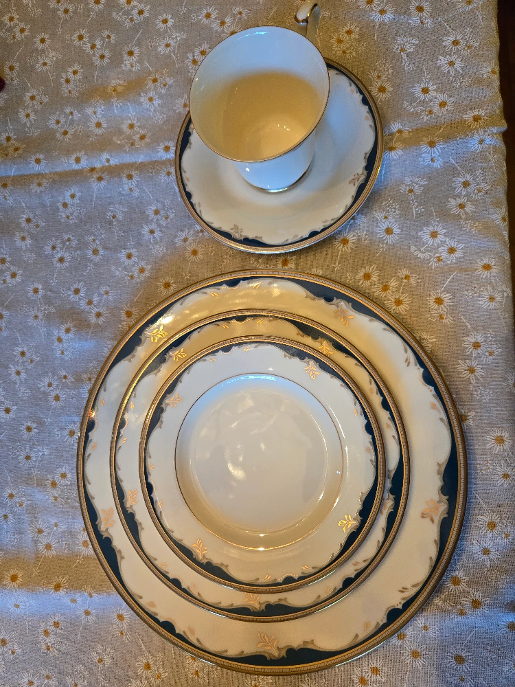 Selling a beautiful Mikasa Fine Ivory LAN23 Winston Blue dinnerware set. 12 piece setting. The design is by Taskara, made in Japan. This elegant set would be perfect for special occasions or to add a touch of class to your everyday meals