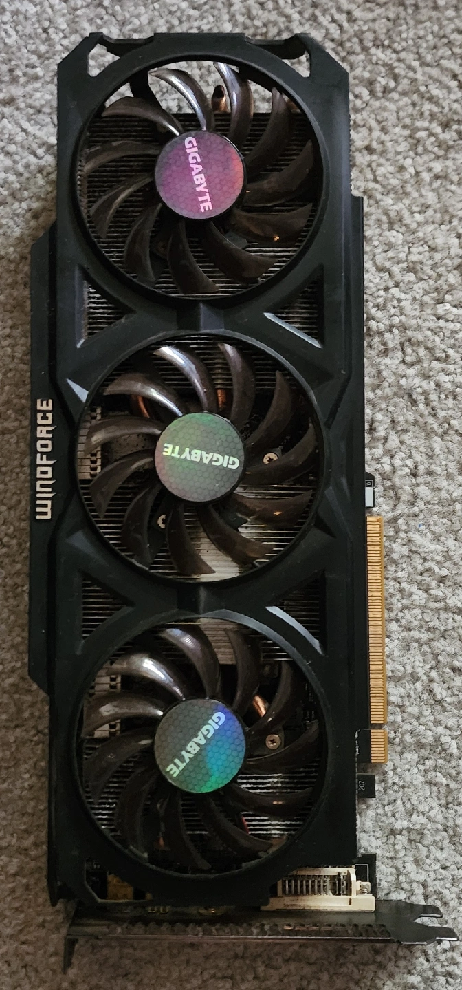 Selling a Gigabyte Windforce graphics card. It features a triple fan design for efficient cooling during gaming or other demanding tasks. It's in great working condition and ready to be installed in your system. Also selling other compatible components to make a working PC.