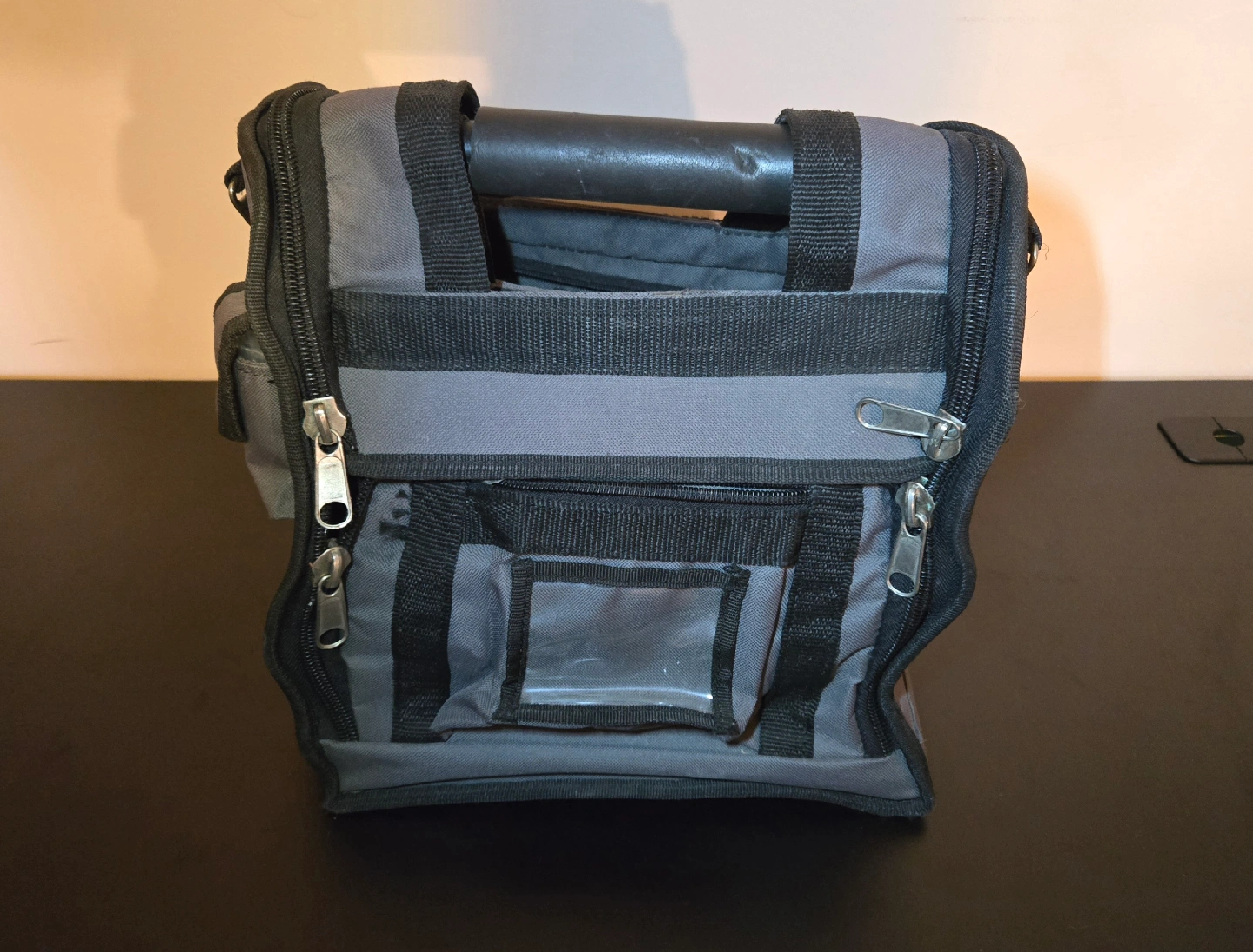 Heavy-Duty Tool Bag with Rigid Handle Heavy-Duty Tool Bag with Rigid Handle. Durable design with reinforced stitching, strong zippers, and multiple compartments for organizing tools. Features a solid carry handle and side pouches for extra storage. Condition: Used, good shape, zippers and handle work properly. Some minor wear inside from normal use (see photos). Cash preferred, eTransfer accepted. Delivery may be available for an additional cost. All sales are final. Price: $25 CAD Check out my other ads!