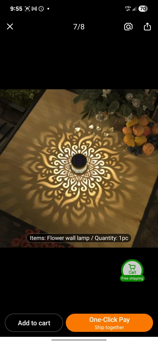I'm selling a flower wall lamp with a lotus pattern. It is a solar wall light, and the quantity is one piece. The dimensions are 9.6cm/3.74inch x 8cm/3.14inch