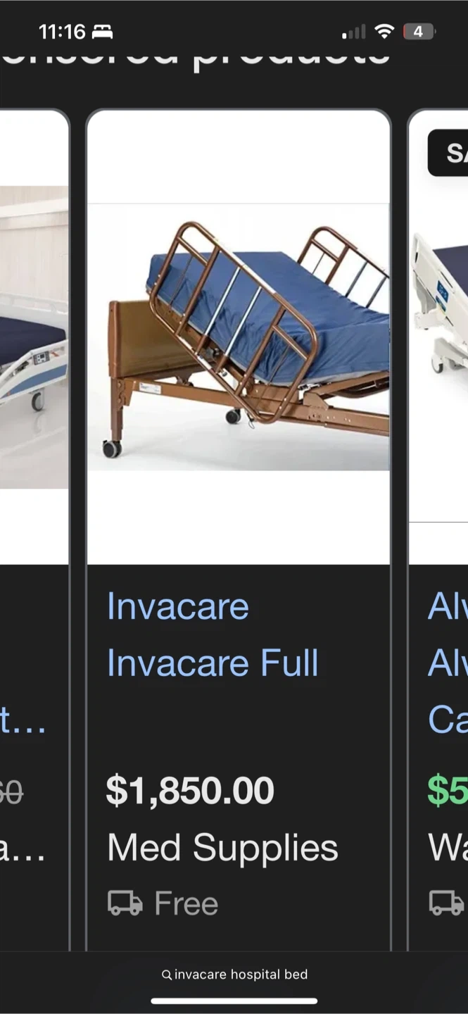 Invacare homecare hospital electrical bed, selling it as is for $700 BUT I can give it for $550 if buying immediately. Barely used and YES just selling the bedframe and no mattress.