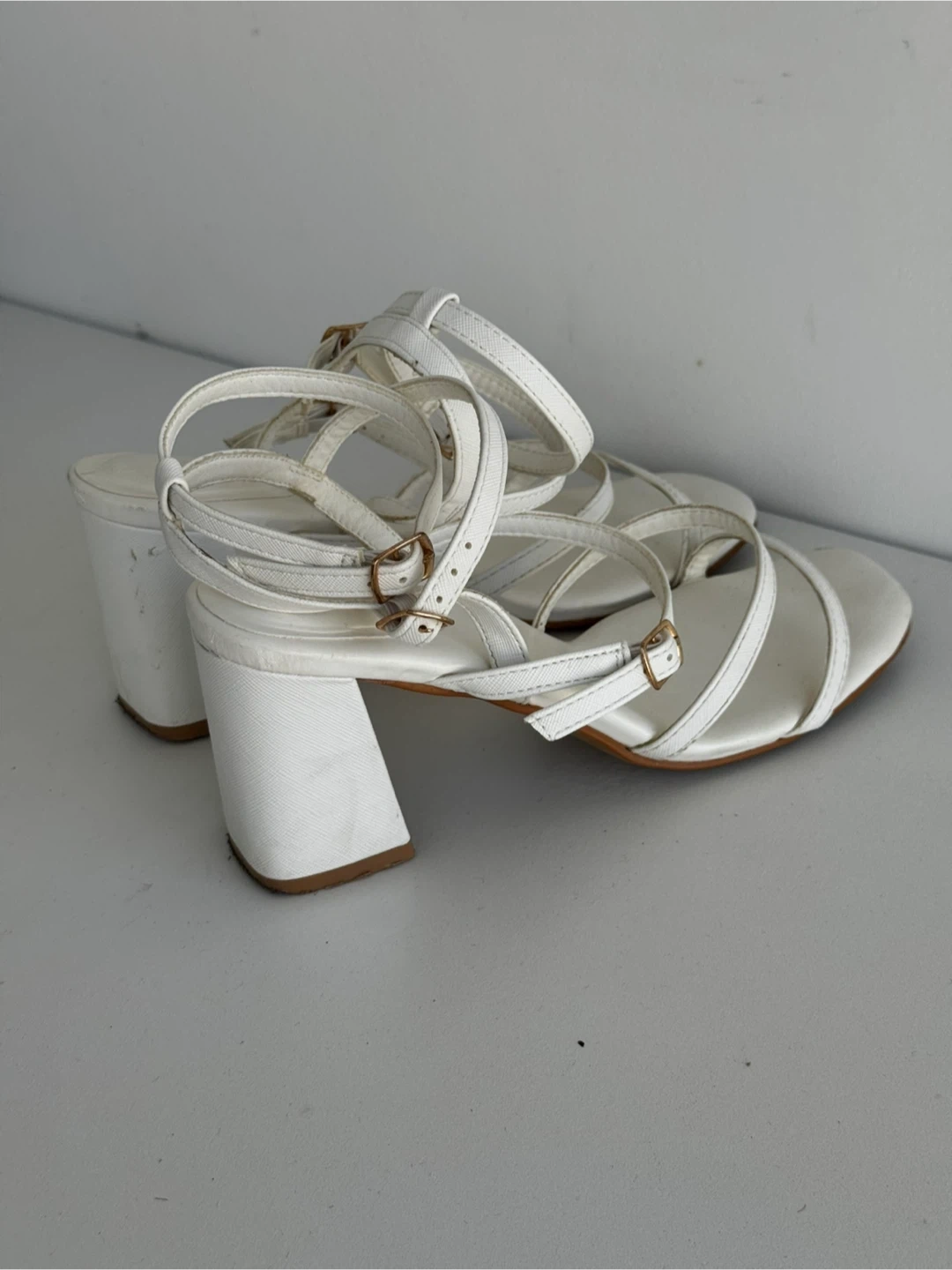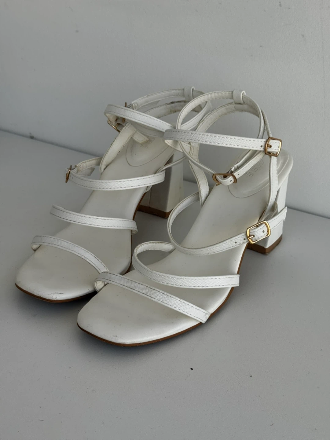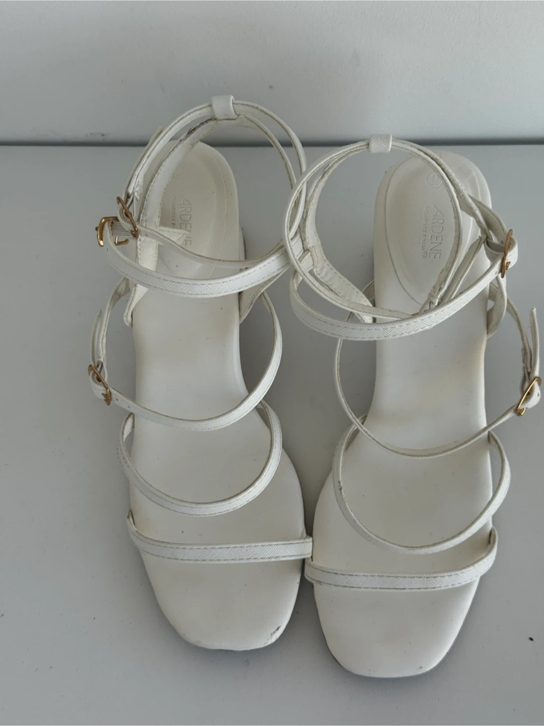 These are a pair of Ardene heels in white. They are a size 7 and feature a strappy design. Perfect for dressing up or down!