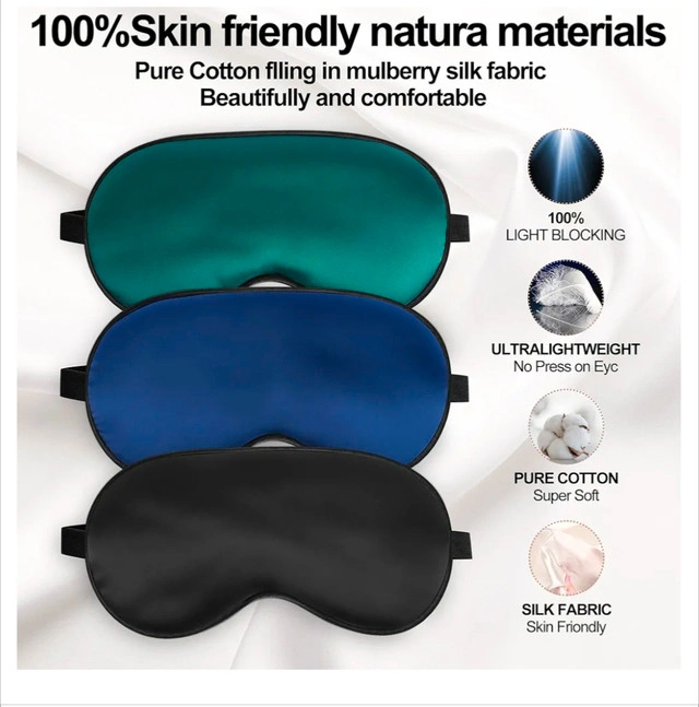 Enjoy a more restful sleep with these light-blocking sleep masks, crafted from skin-friendly natural materials like pure cotton filling and mulberry silk fabric, ensuring a comfortable fit. These masks feature an adjustable elastic band for a custom fit, measuring 23.5-49cm in length, and boast 100% light-blocking capabilities for complete darkness. New Key features: * 100% Light Blocking * Ultra Lightweight * Pure Cotton Filling * Silk Fabric Looking to drift off into dreamland? These masks are your ticket to a tranquil night's sleep! And remember, if the ad's up, they're available for purchase!