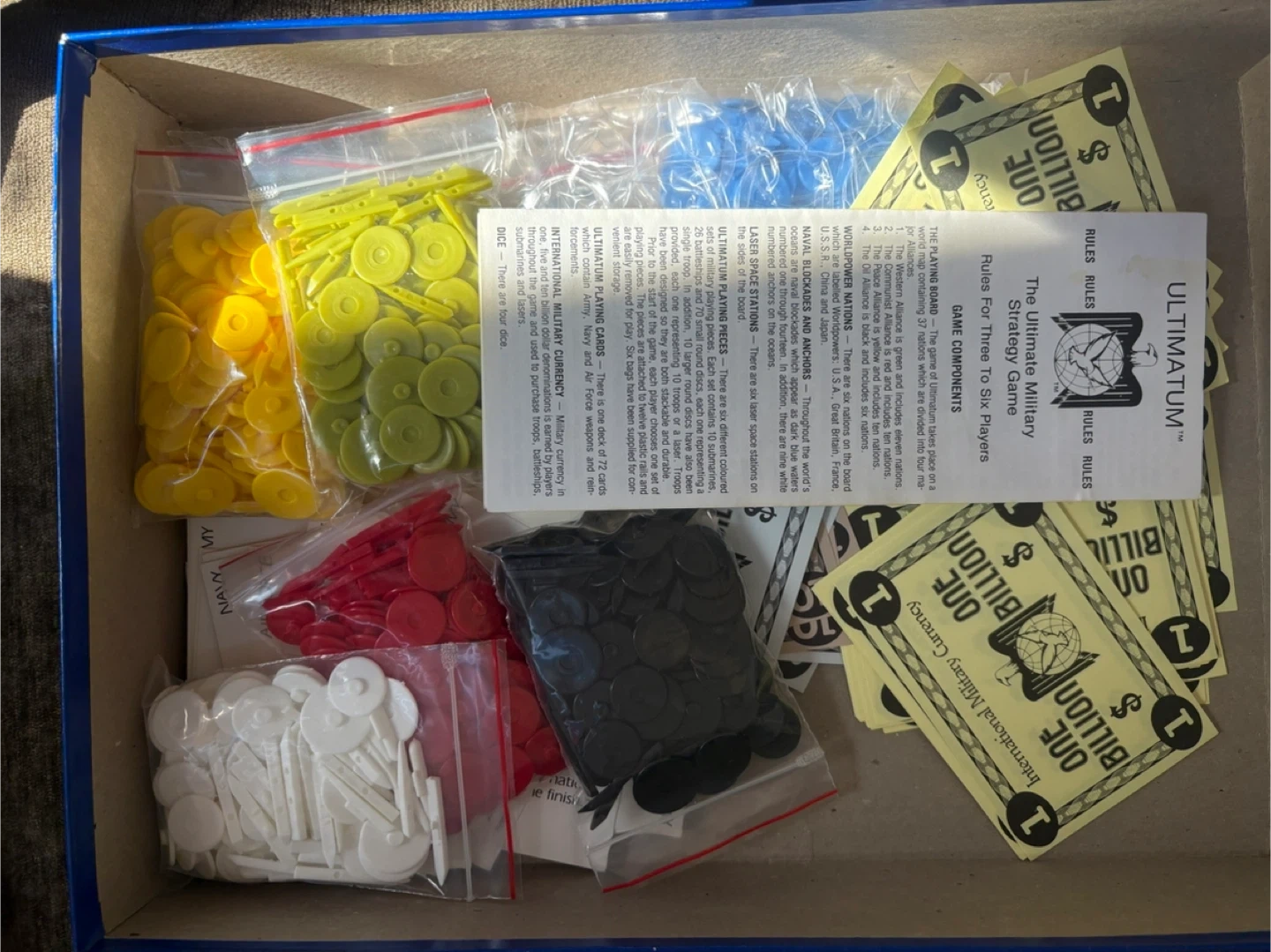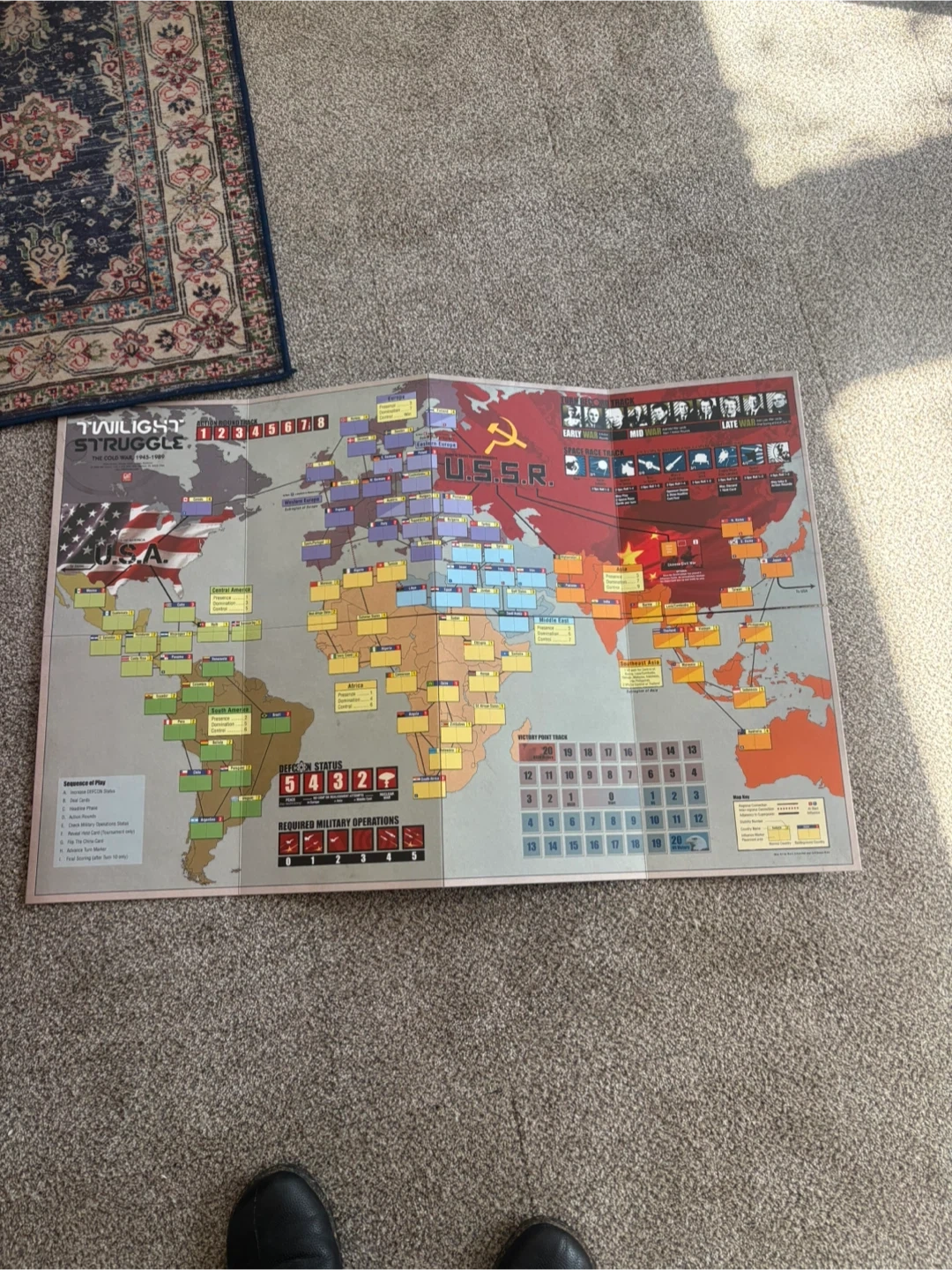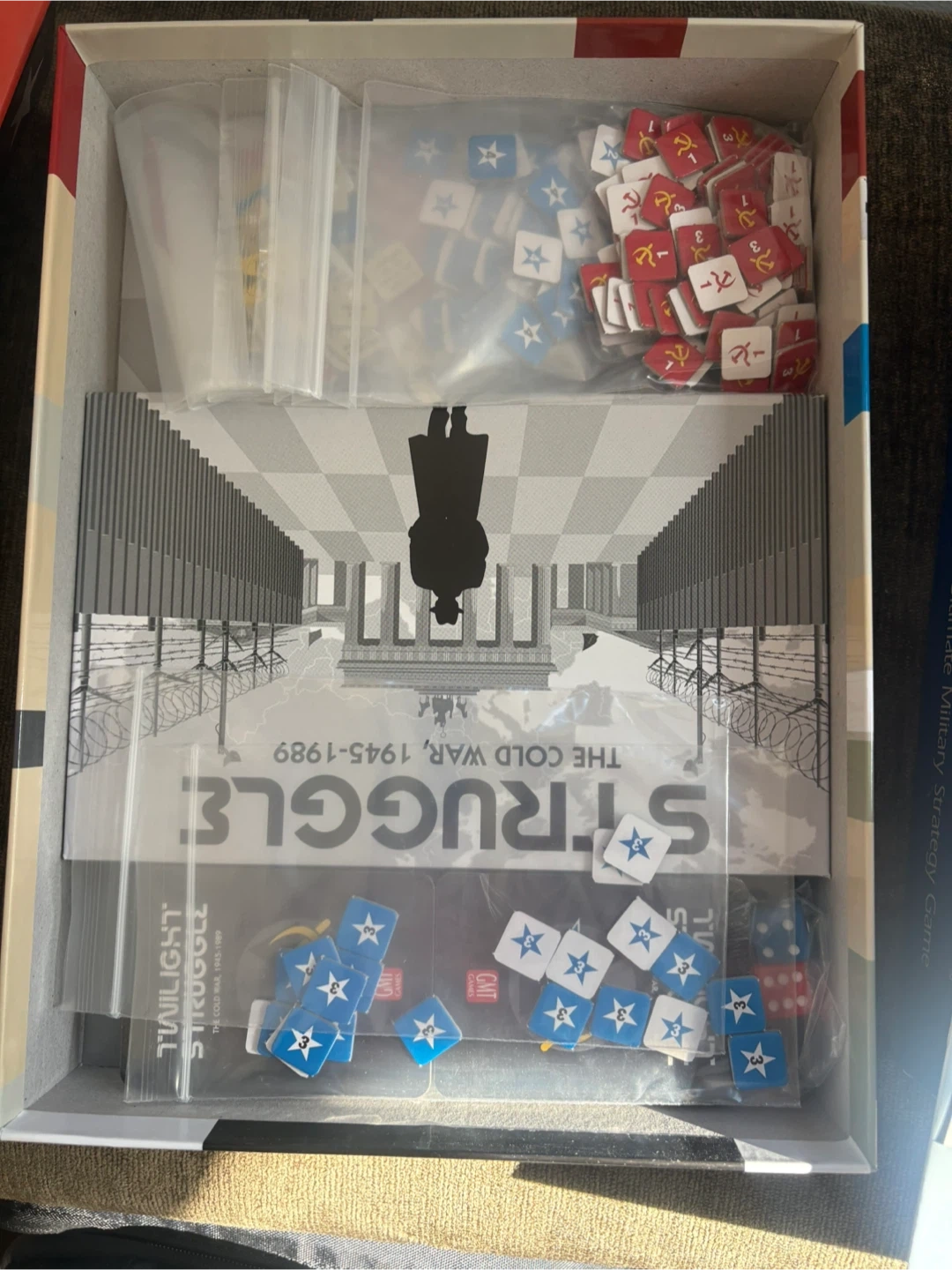 Selling a copy of Twilight Struggle: The Cold War, 1945-1989 board game. It's the Deluxe Edition by GMT Games. Comes with all the components and the rule book. Great strategy game! As well as another military strategy game Ultimatum - also with instructions and all accessories Per and smoke free home Ultimatum has has lots of play time and twilight has only been played 2x I am clearing these out as they were more for a game with friends and family - as I’ve gotten older I don’t have time to play these and my gamers friends have kids now so I will hope these delight a new group