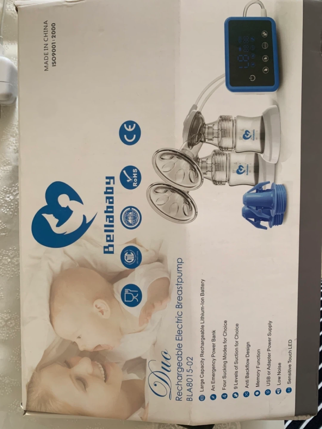 Selling a Bellababy Duo rechargeable electric breast pump. It comes with all the components and the original box. Key features include: - Large capacity rechargeable lithium-ion battery - An emergency power bank - Four sucking modes for choice - 9 levels of suction for choice - Anti-backflow design - Memory function - USB or adapter power supply - Low noise - Sensitive touch LED