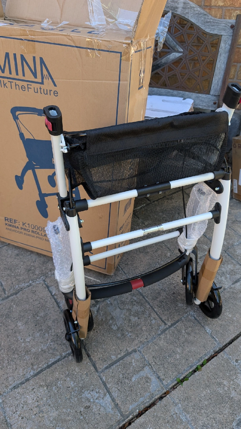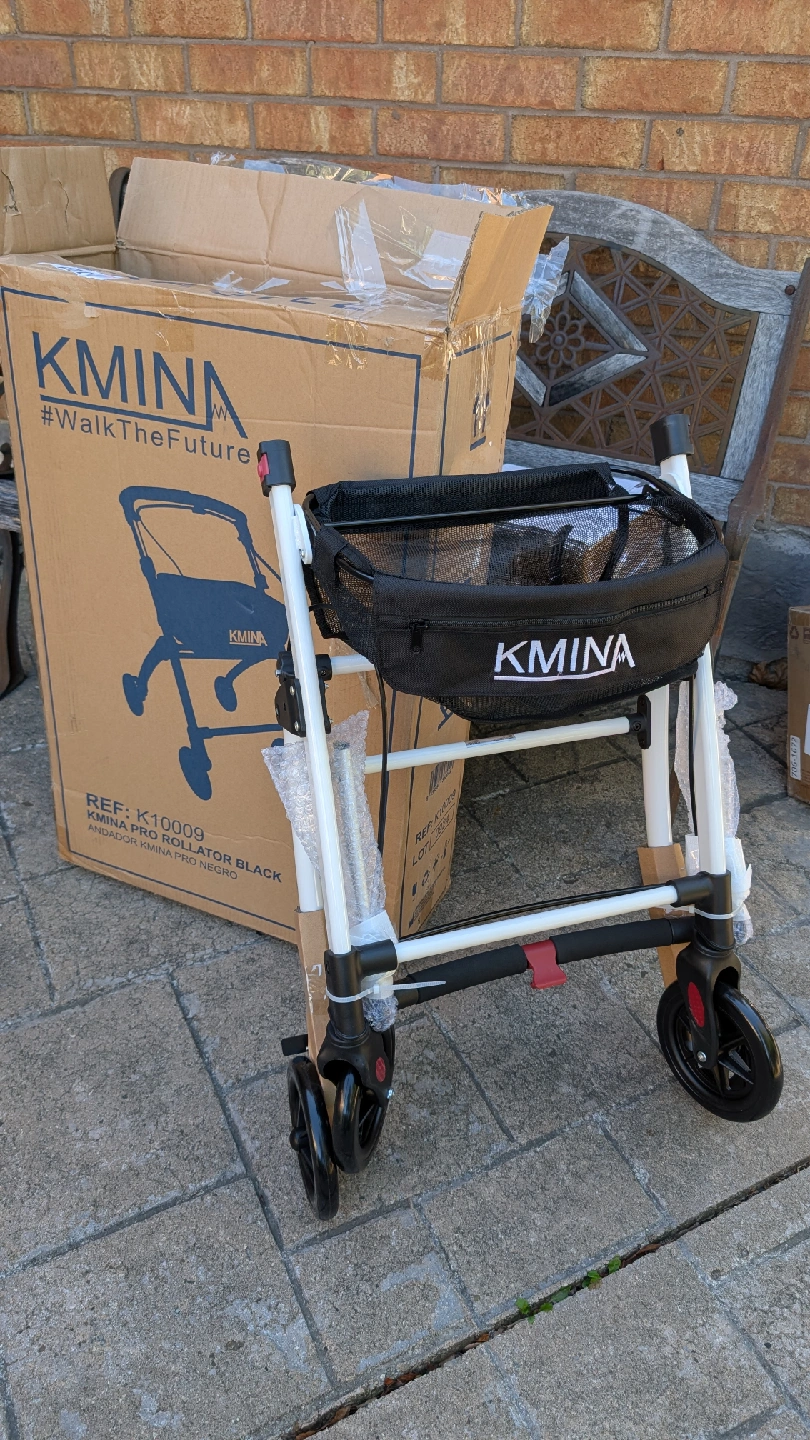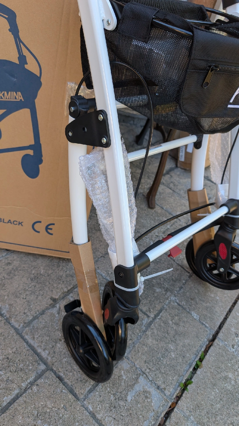 KMNIA Rollator Pick Up Mississauga Eglinton & Hurontario Cash Only FUNCTIONAL: This rollator walker allows the user to move independently and safely thanks to its sturdy structure and its front wheels with 360 ° steering. Its basket with outside pocket and tray are ideal for storing and transporting objects. STRONG AND LIGHT: Thanks to its narrow design (21.2 inches) and its light weight (13.2 lbs), this foldable rollator multiplies the accessibility of the user and is ideal for use it indoors, even in the narrowest corridors and doorways. In addition, its folding system makes it easy to store. COMFORTABLE AND SAFE: For maximum adaptability and comfort, the rollator with tray has 5 height adjustments and a single-axis handlebar for one-handed use. Its more sensitive braking system that requires less force increases user safety. HIGH QUALITY: The sturdy frame made of aluminium tubing and its solid 7" diameter wheels provide greater stability. Retail $350