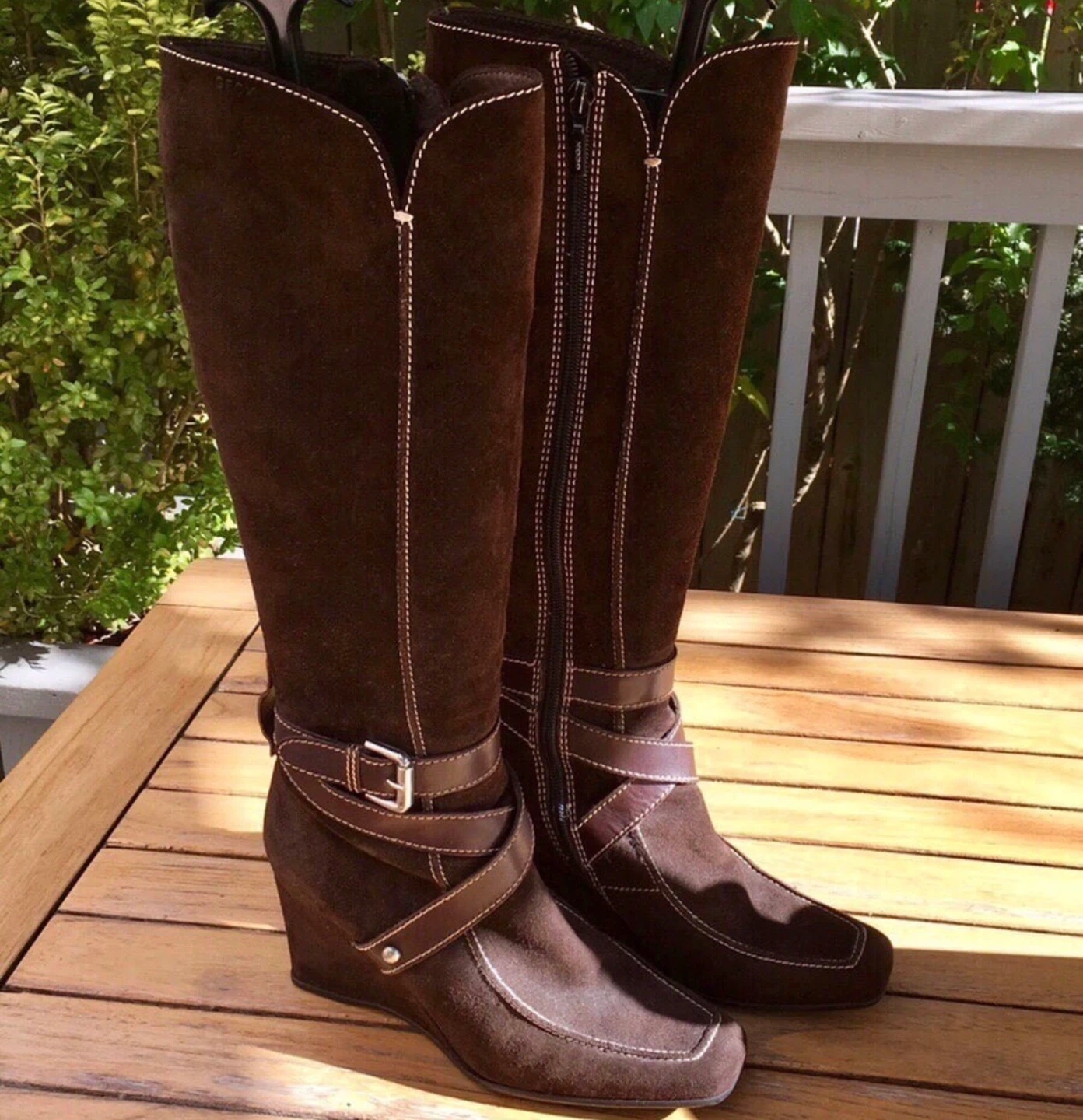 ❤️GEOX NEW STUNNING Dark Chocolate brown suede boots❤️ ⭐️GEOX NEW STUNNING Dark brown suede boots with a wedge heel and stitching and straps ⭐️ Size 37(fits 7-71/2) Absolutely stunning boots and in excellent condition as never actually worn. ***Cross posted on several different sites*** $279 ⭐️Pick up in South Oak Bay,Victoria ⭐️ Condition: New