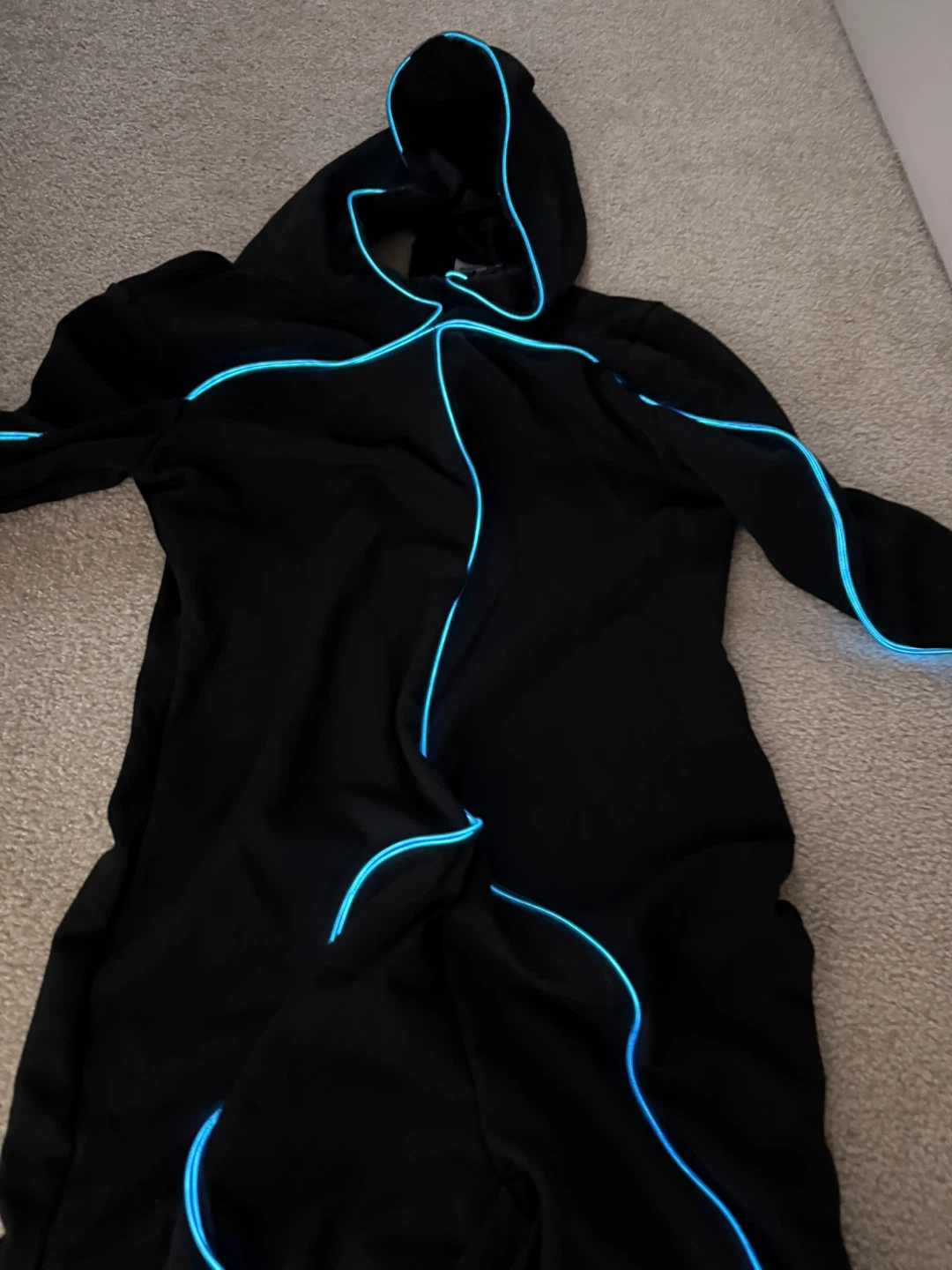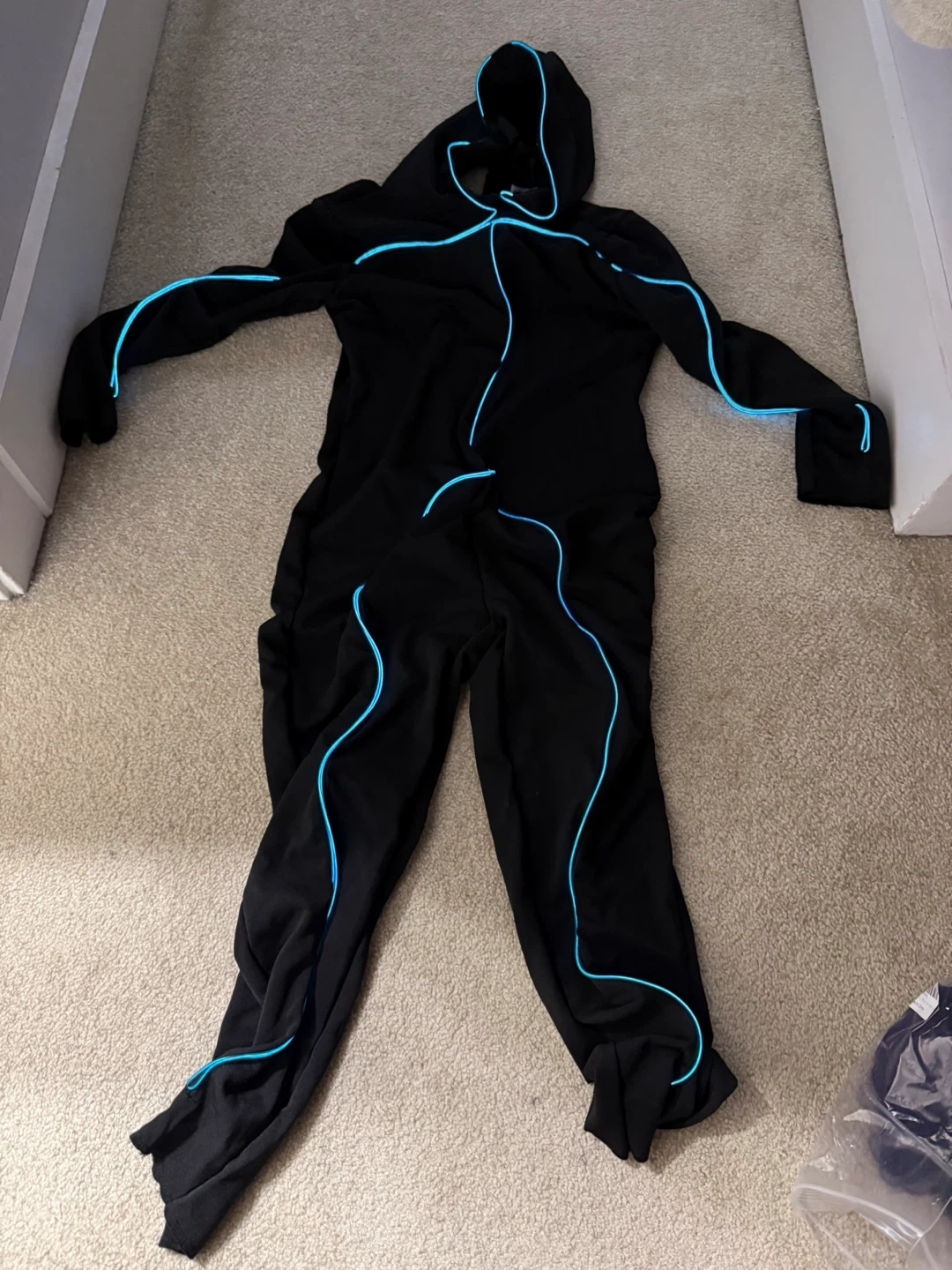 Selling a light up stick figure costume. It's black with blue LED lights. Perfect for Halloween or a party! Size 6-10 year old