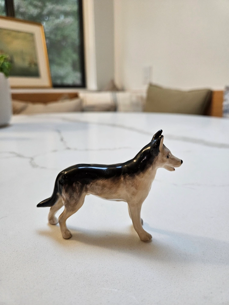 Selling a lovely small vintage ceramic german shepard dog figurine. It's in great shape and would make a charming addition to any collection or home decor. On trend for cottagecore trend.