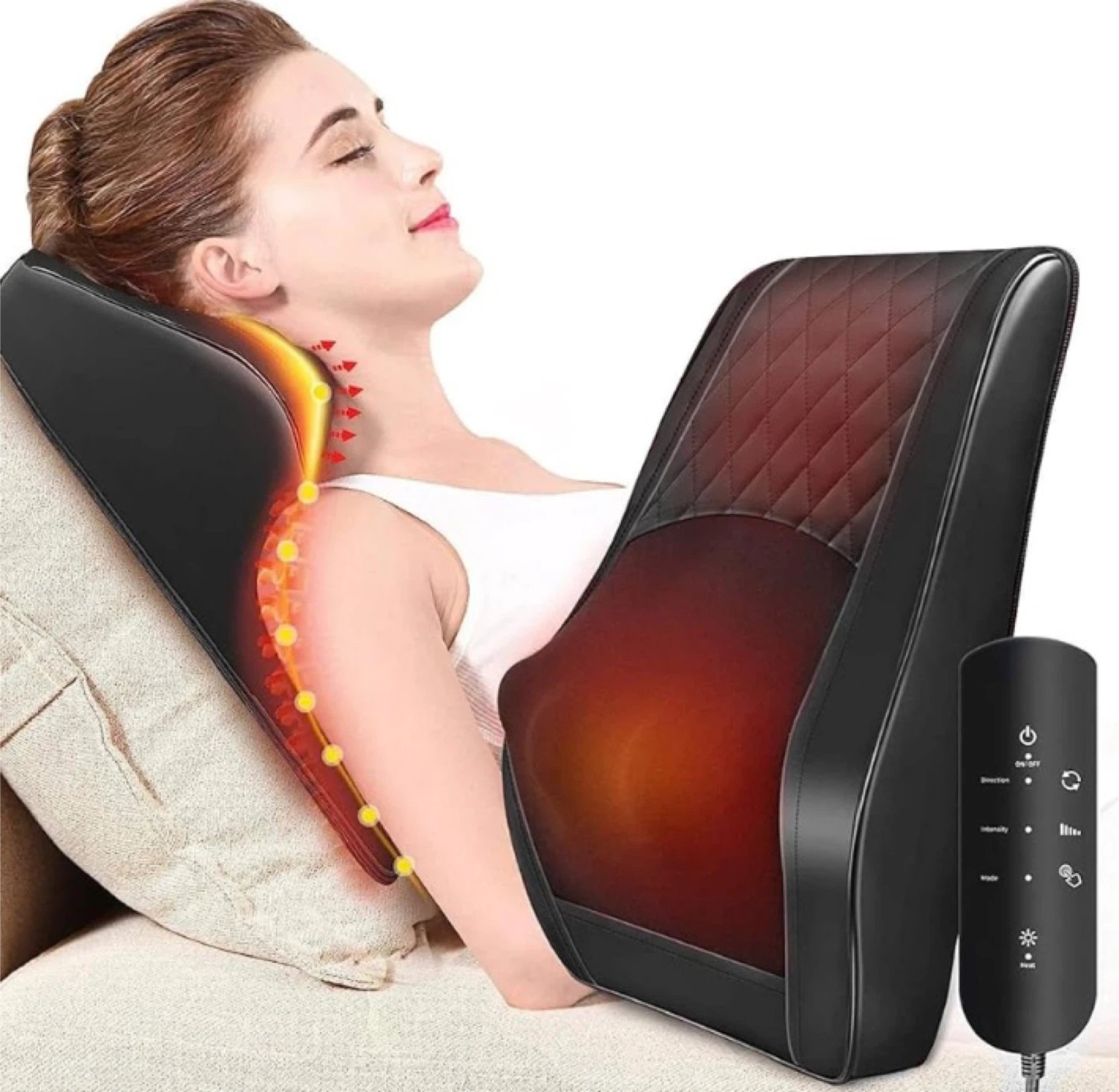 This is designed for multipurpose use, targeting areas like the neck, abdomen, waist, arms, thighs, and calves. It comes with a heat function to enhance relaxation and soothe sore muscles. Perfect for use at home or in the office to relieve tension and promote wellness