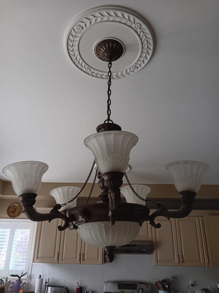 Selling a set of two beautiful hanging chandelier light fixtures. They have a classic design that would look great in a kitchen, dining room or living room. The fixtures feature multiple lights. They are in great condition and ready to brighten up your home.