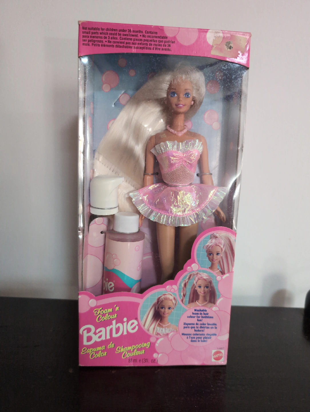 Selling a brand new, in-box Foam 'n Colour Barbie doll! This Barbie comes with washable foam-in hair colour for bathtime fun. The box includes the doll and accessories as shown in the pictures. A great gift for a Barbie collector or child!