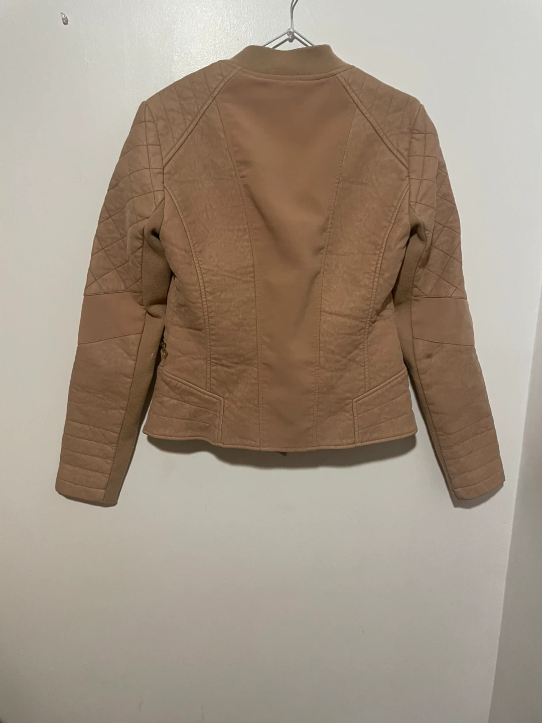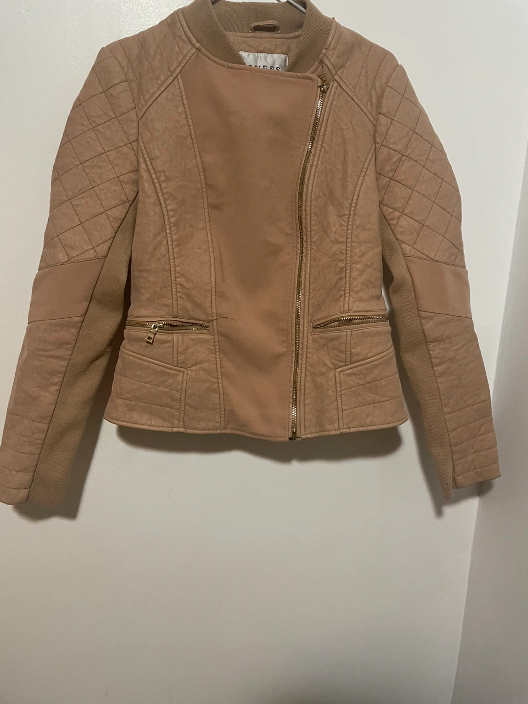 Selling a gently used Guess quilted faux leather jacket in a beautiful neutral colour. It's a size small and features stylish quilted detailing. Perfect for adding a touch of chic to any outfit!
