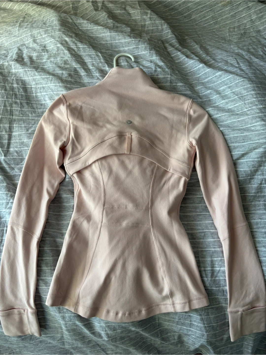 Selling a even worn Lululemon Define Jacket in a lovely pink colour! It's a size 0 and made with 89% Nylon and 11% Elastane. Perfect for workouts or just everyday wear!