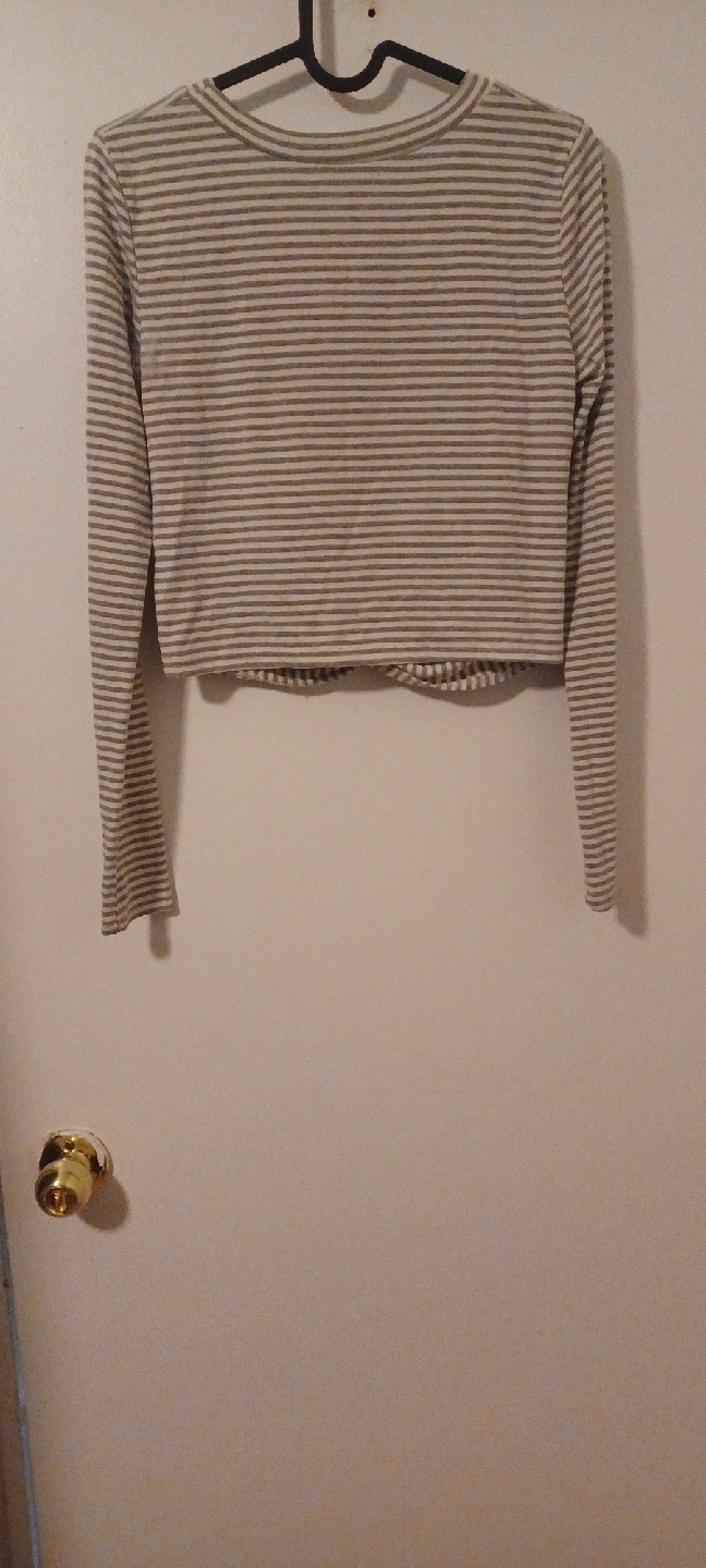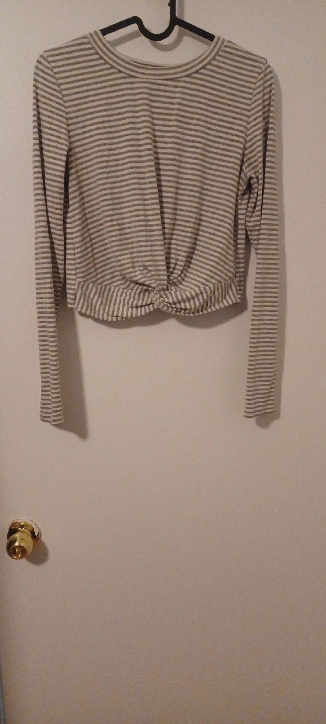 Here's a cute striped long sleeve crop top! It has a knot detail at the front. Light, easy fabric.