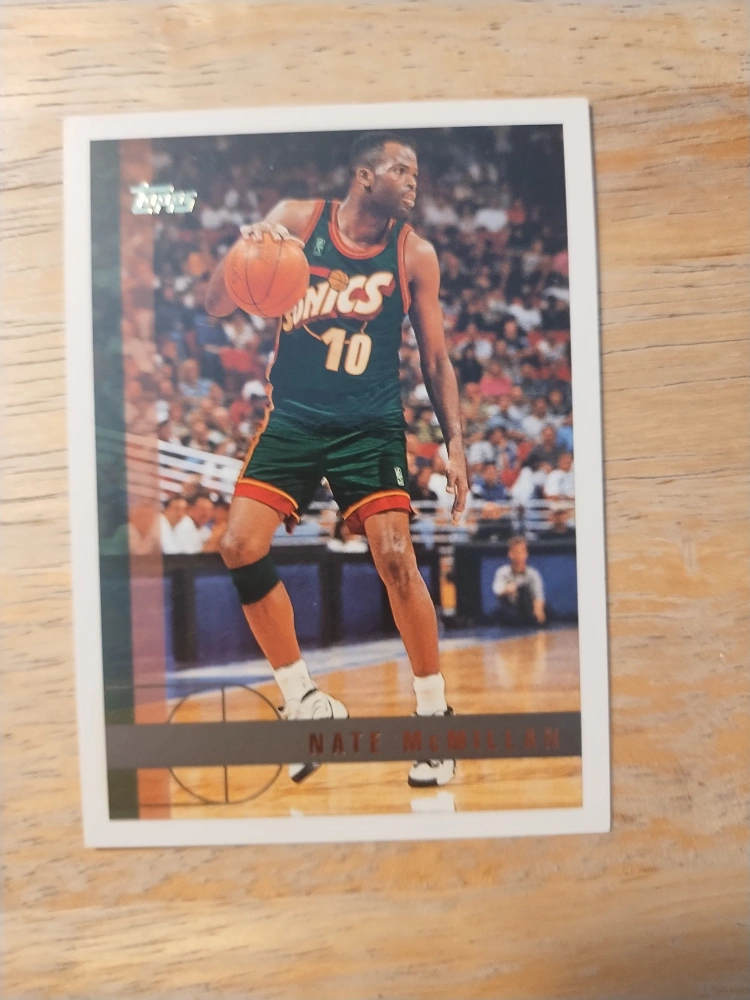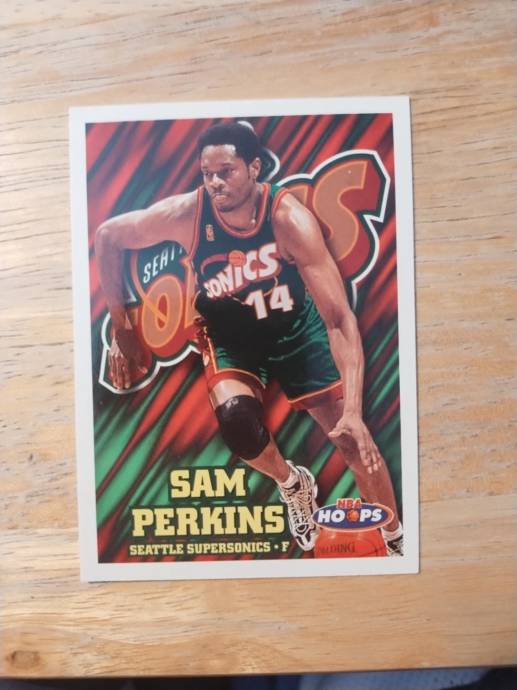 Selling a collection of vintage Seattle Supersonics basketball trading cards! These cards feature players like Sam Perkins and Nate McMillan. Great for any basketball fan or collector!