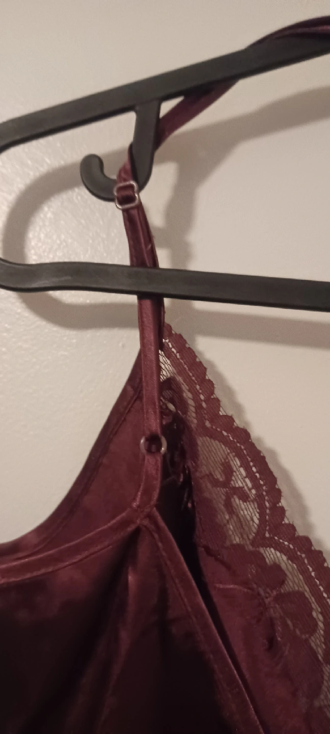 Selling a cute burgundy cami top with lace detailing! It's in great condition and perfect for layering or wearing on its own. The straps are adjustable for a comfortable fit. Rad-cycled from a nighty to make a cute tank.