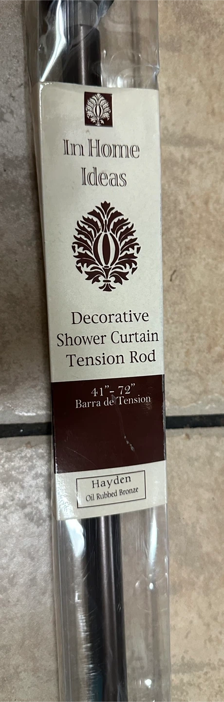 I'm selling a brand new In Home Ideas Decorative Shower Curtain Tension Rod! It's still in its original packaging. - Brand: In Home Ideas - Model: Hayden - Color: Oil Rubbed Bronze - Size: 41" - 72"