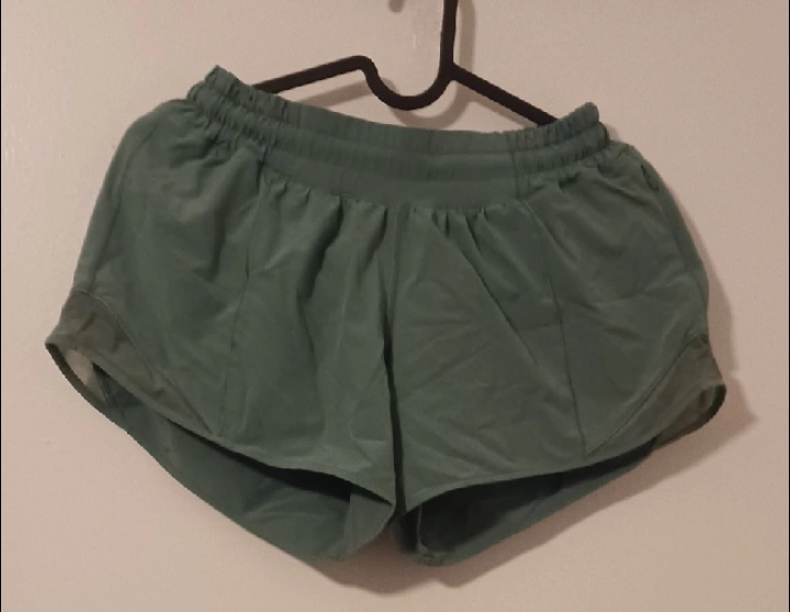 Selling a pair of Lululemon running shorts in a lovely green colour! They're in great condition and are a size 6. Perfect for your next workout or just lounging around