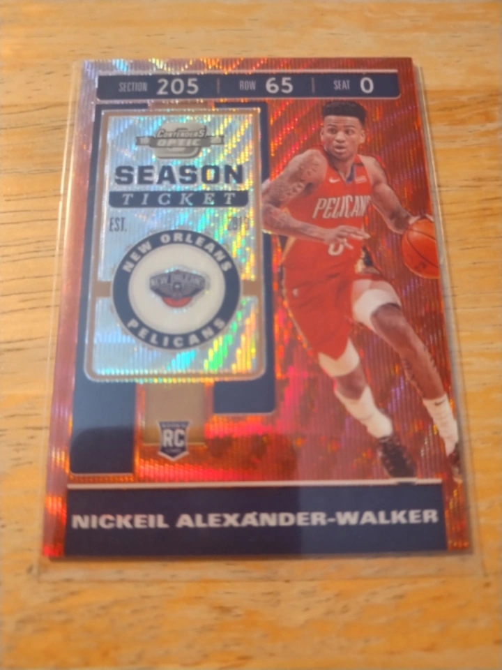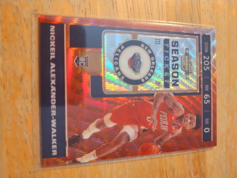 Selling a Nickeil Alexander-Walker rookie season ticket card. It features a cool design with the New Orleans Pelicans logo and player image. Great for any basketball card collector!