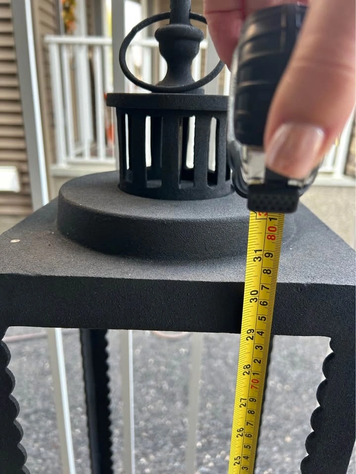 Measures 30.5” high. No glass Great for candles or other decor Bought brand new. Didn’t work in the space and could not return it.