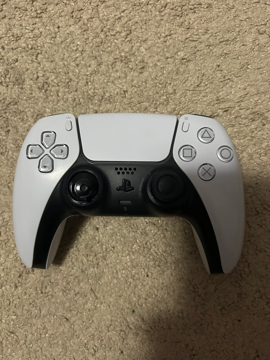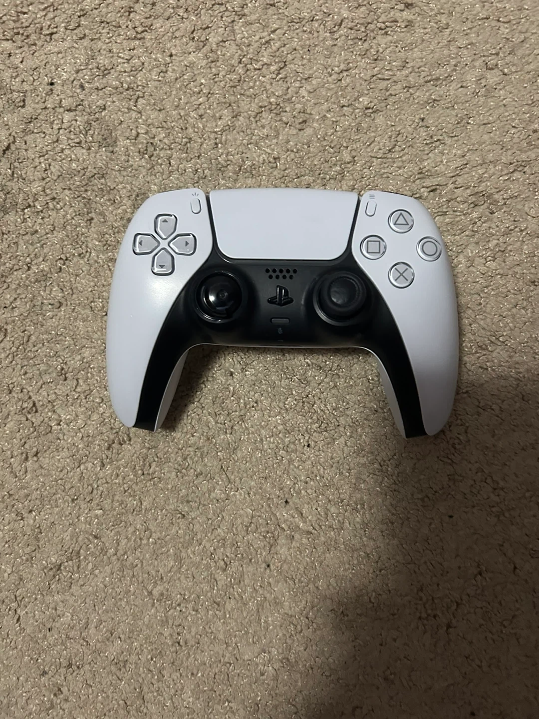 Selling a PlayStation 5 DualSense wireless controller in white! It's in great condition and ready for a new home. Perfect for gaming on your PS5 or PC, and as you can see the only issue is that the left stick is sort of broken.