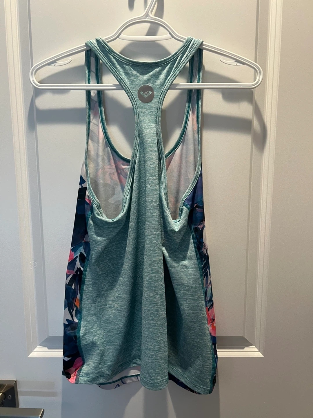 Roxy Dry Flight tank top in size small! The top features a fun floral pattern on the front and a racerback design.