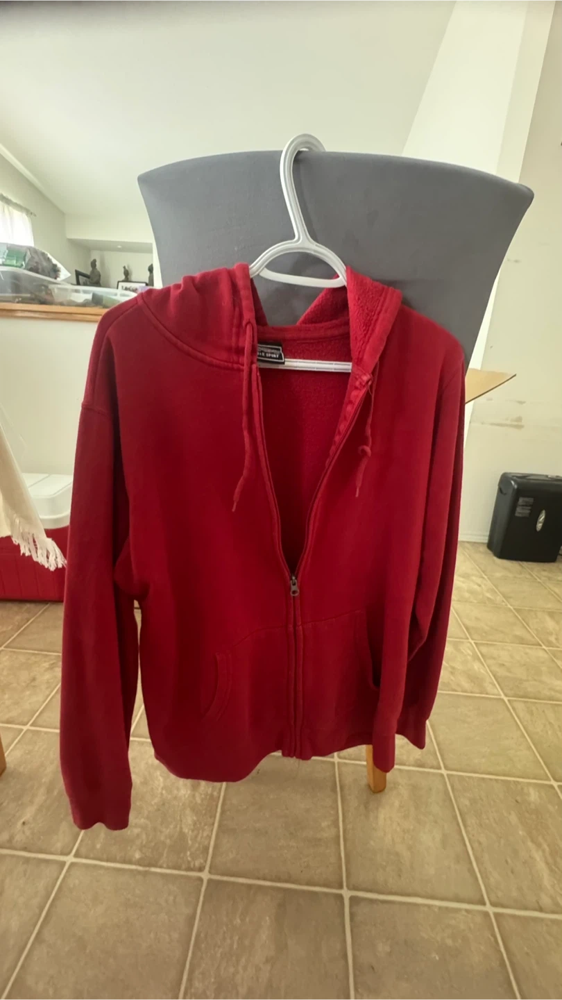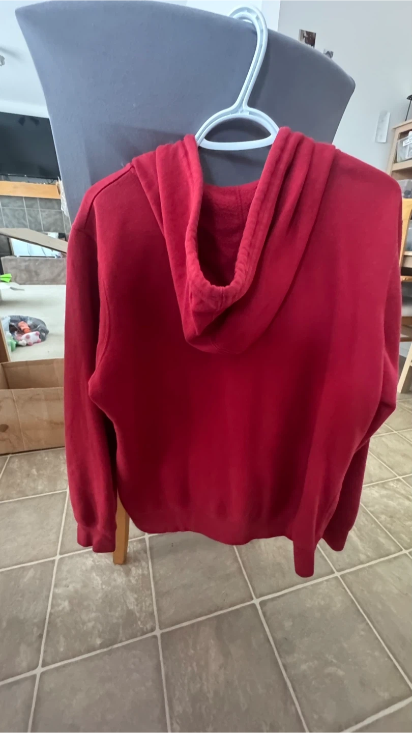Selling a red hoodie from B & E Sport. It's in good condition and would be great for casual wear or sports activities Men size L
