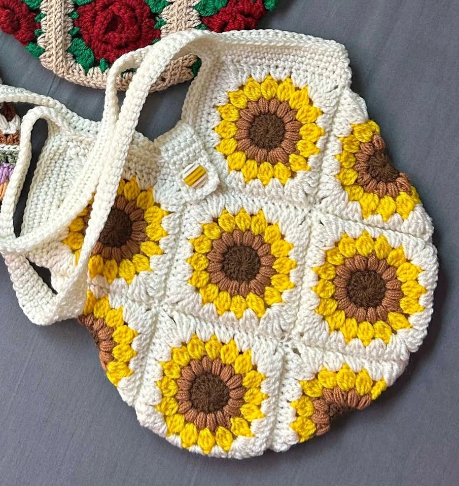 Handmade granny square sunflower tote bag. Crocheted with love. Check out my other listings for more handmade crochet items.