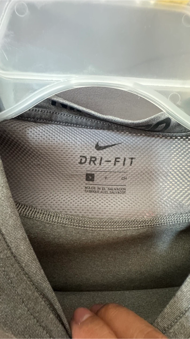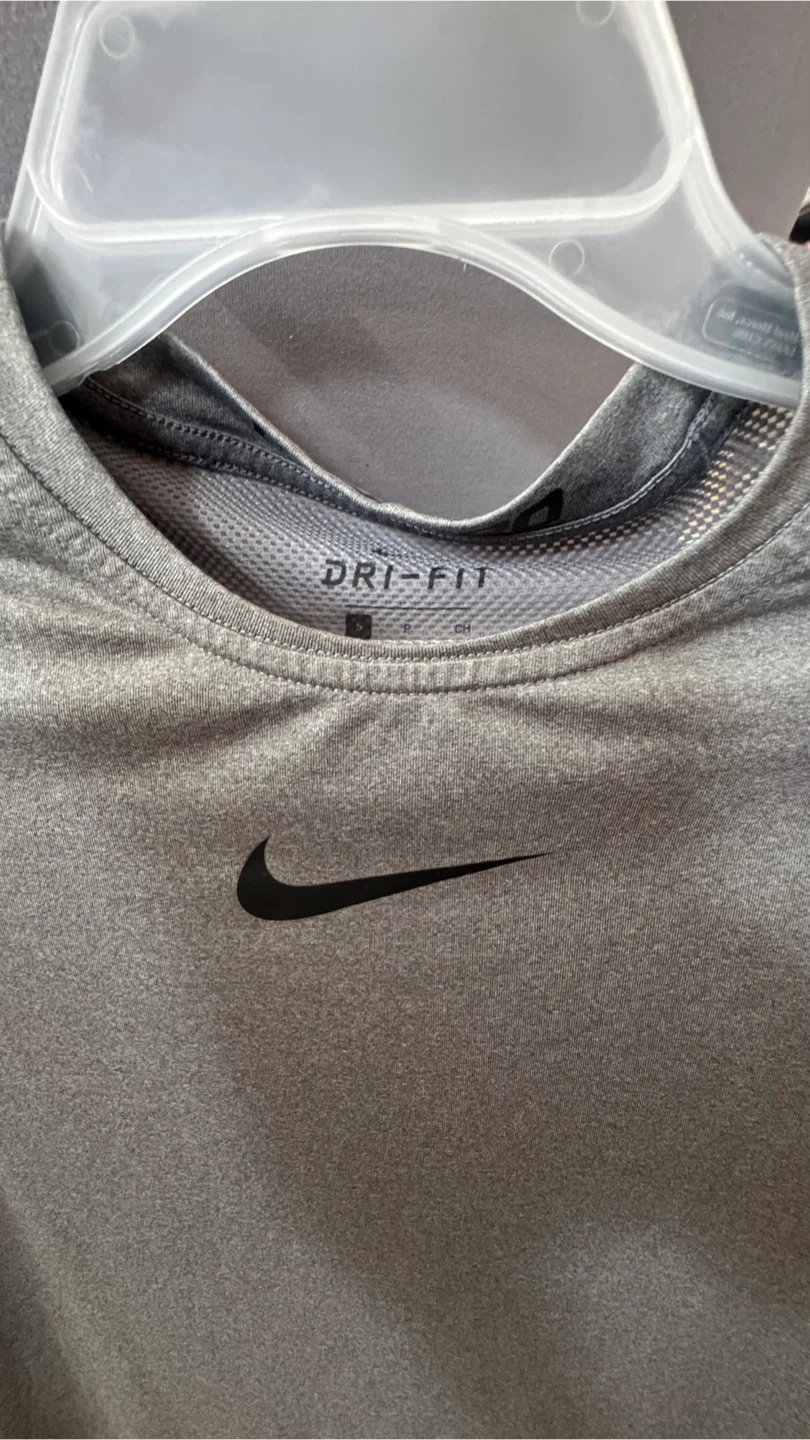 Selling a Nike Dri-FIT Pro fitted shirt in size small. It's a grey colour and in great condition. Perfect for workouts or everyday wear! Compression shirt
