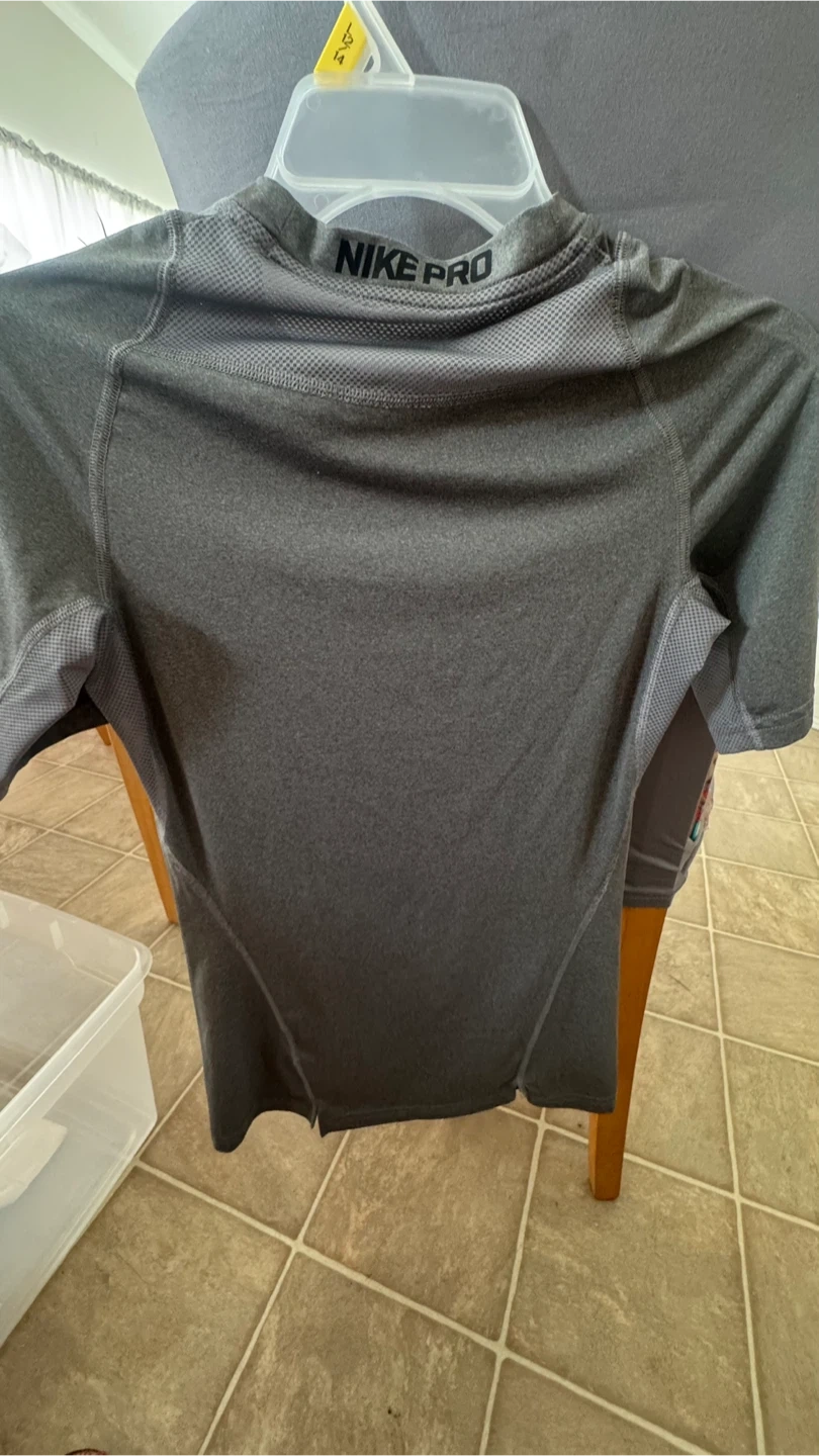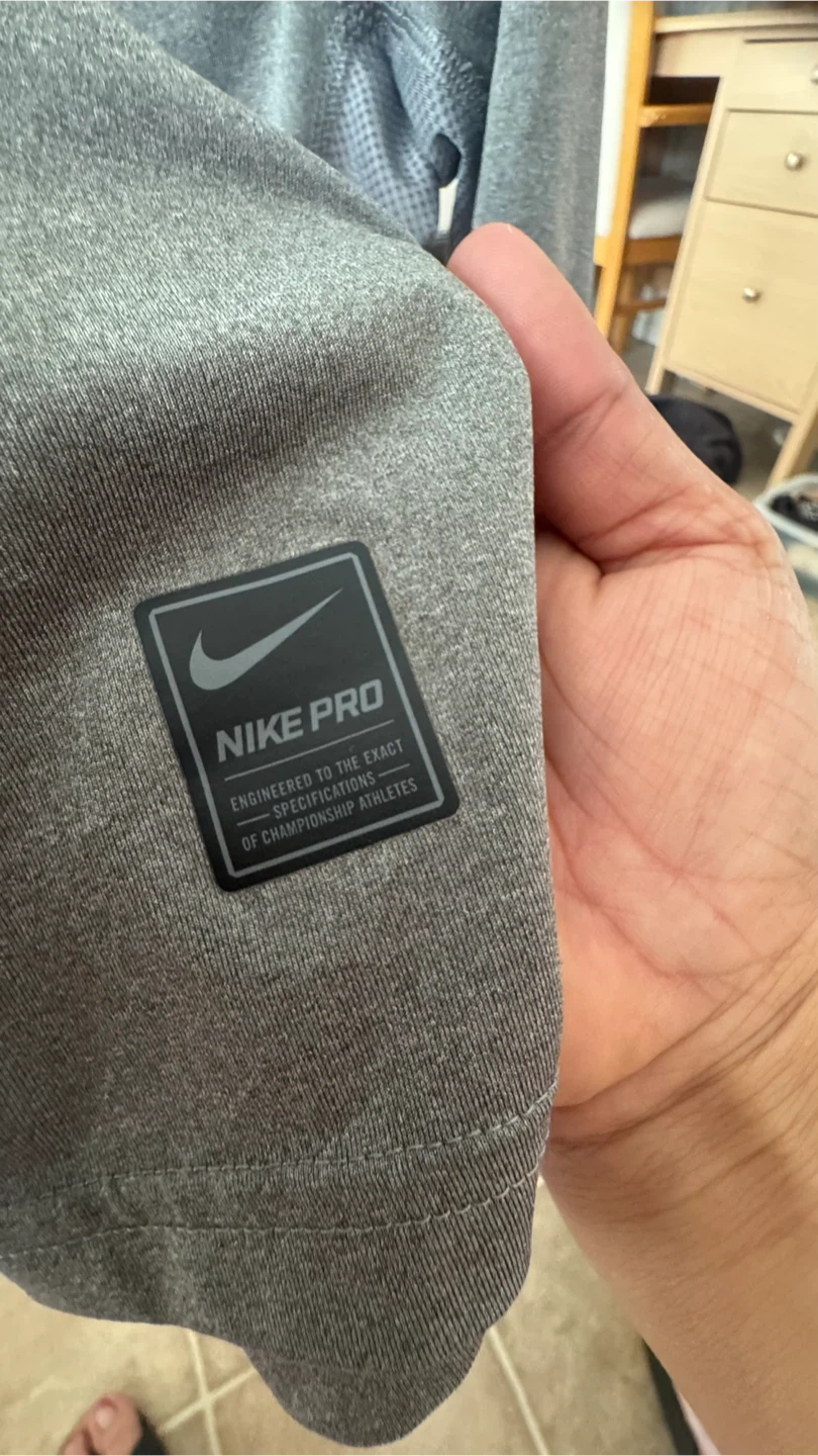 Selling a Nike Dri-FIT Pro fitted shirt in size small. It's a grey colour and in great condition. Perfect for workouts or everyday wear! Compression shirt