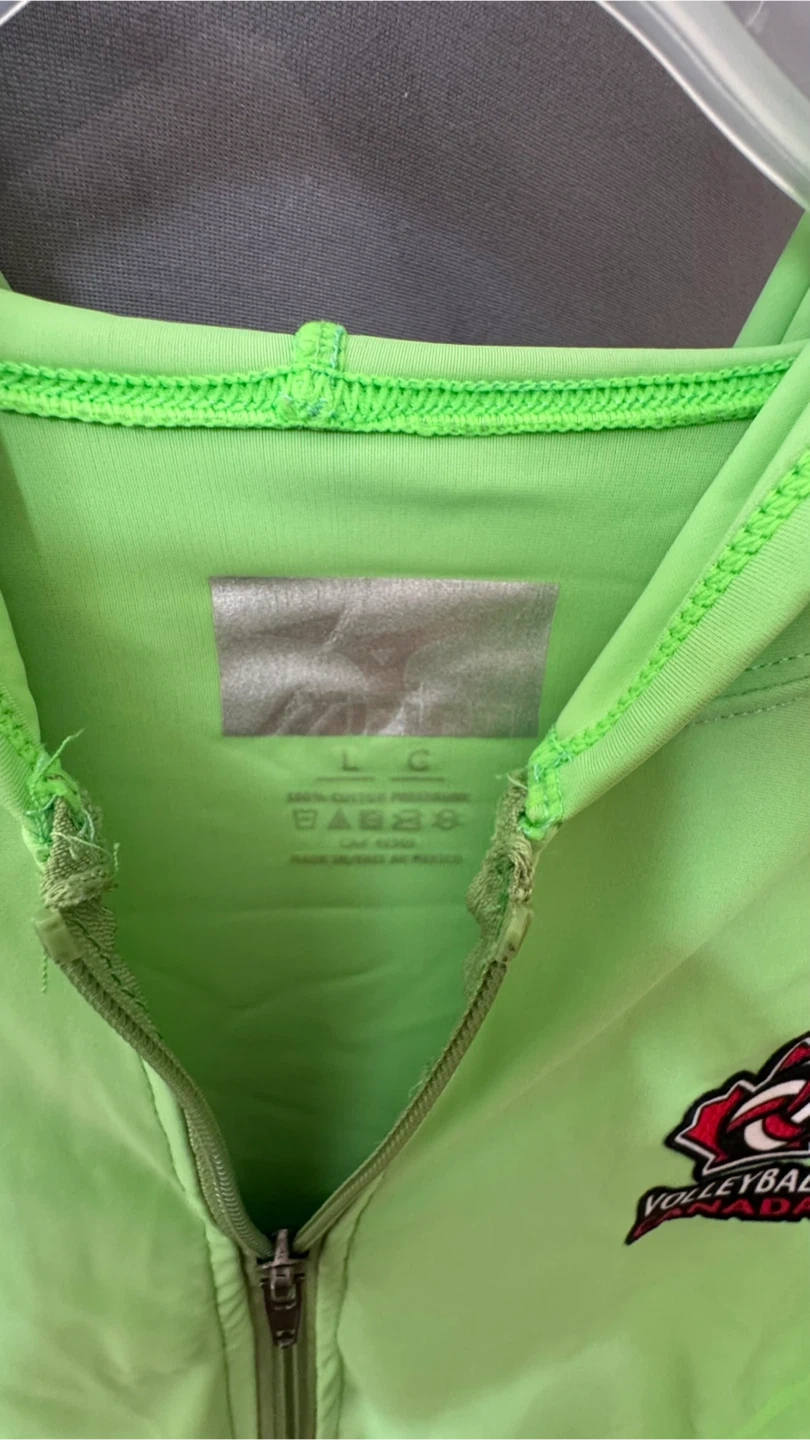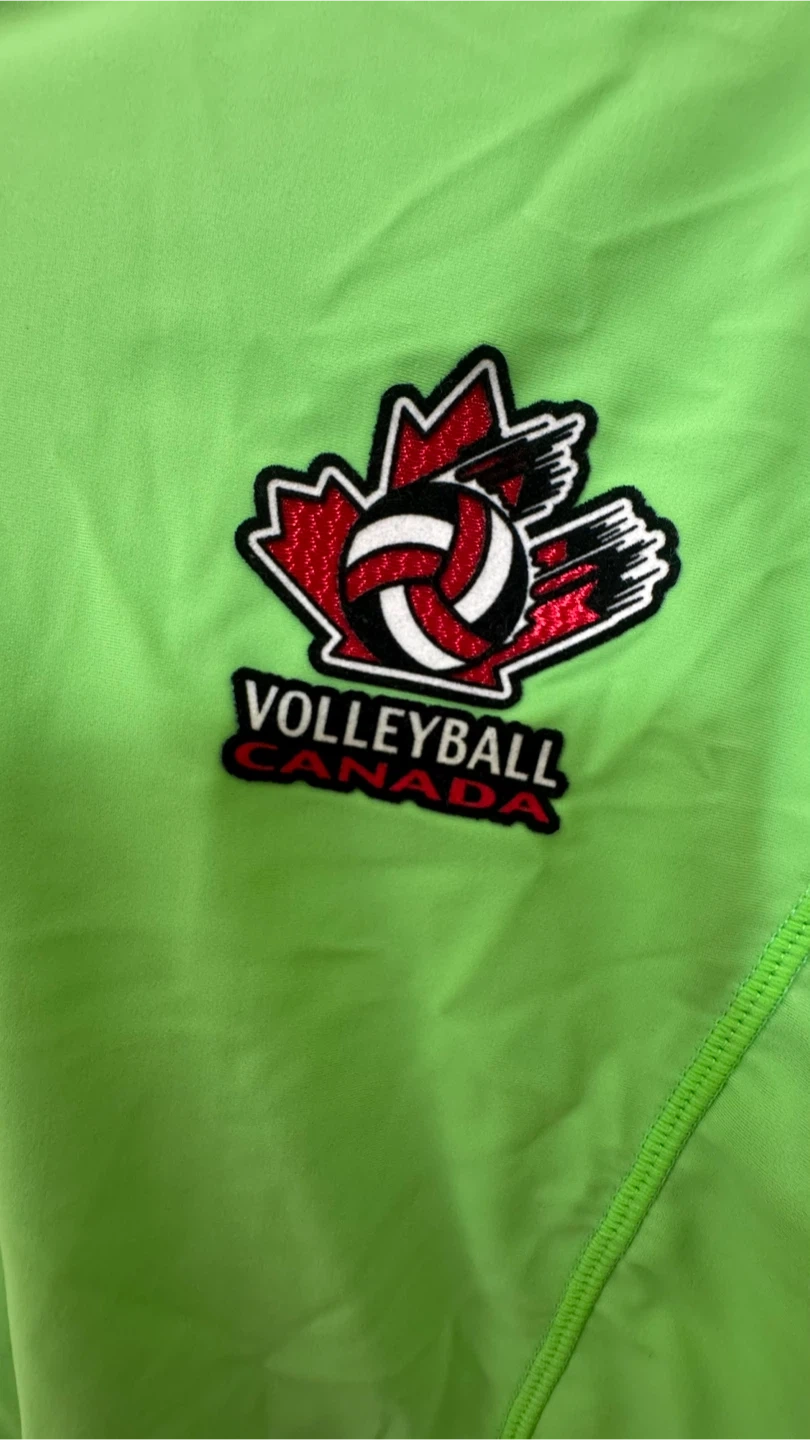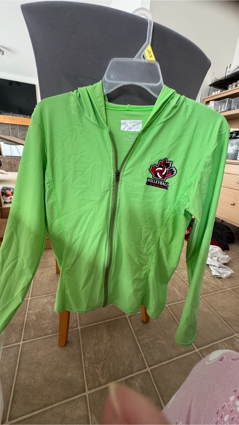 Selling a bright green Volleyball Canada hoodie in size large! It's a lightweight, full-zip hoodie, perfect for layering or wearing on its own. The material is comfortable and breathable. Great for volleyball enthusiasts or anyone who loves a sporty look!