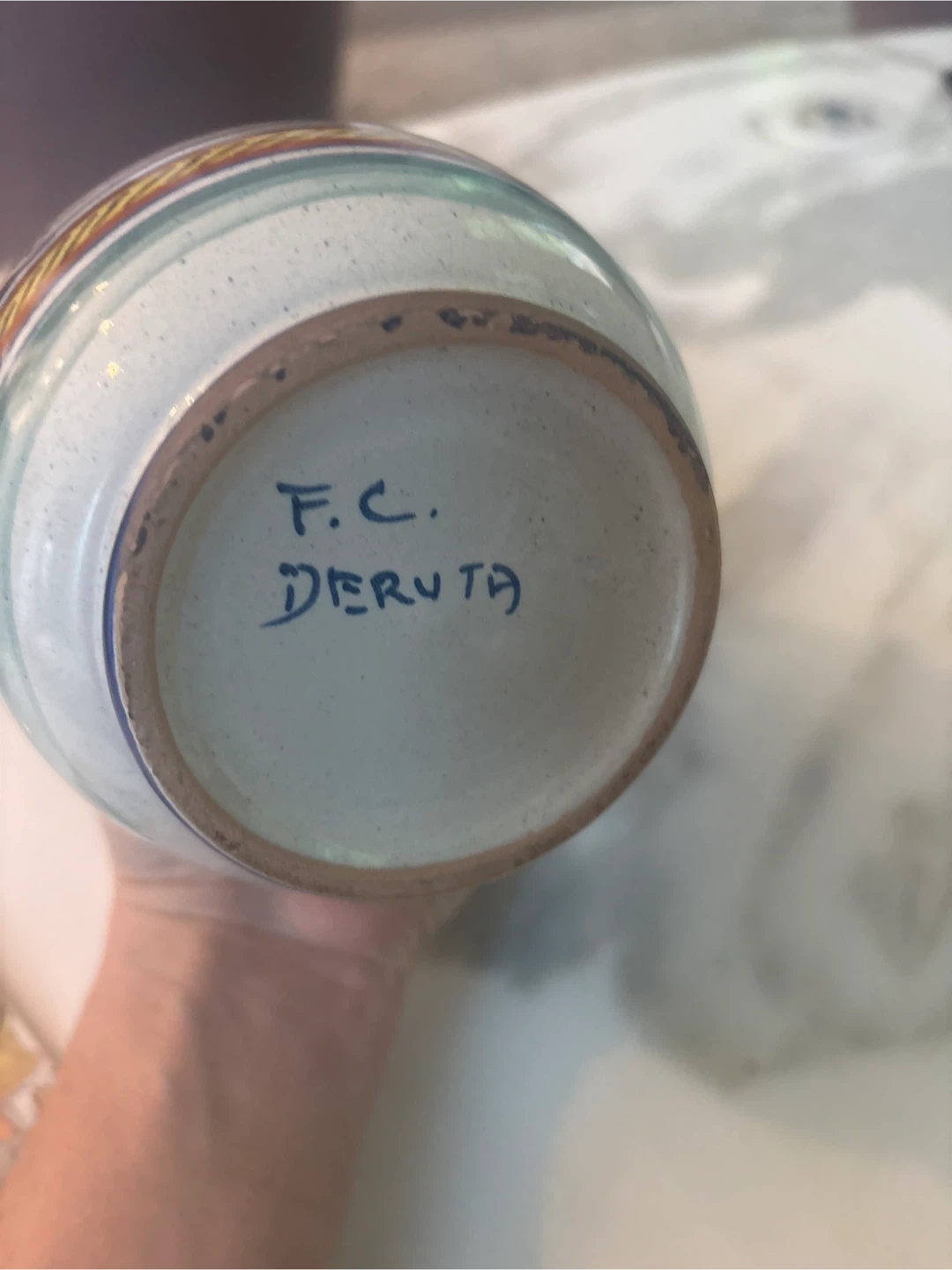 Beautiful vintage hand-painted Deruta vase, marked F.C. on the bottom. Pick up in the Beaches at Queen and Victoria Park.
