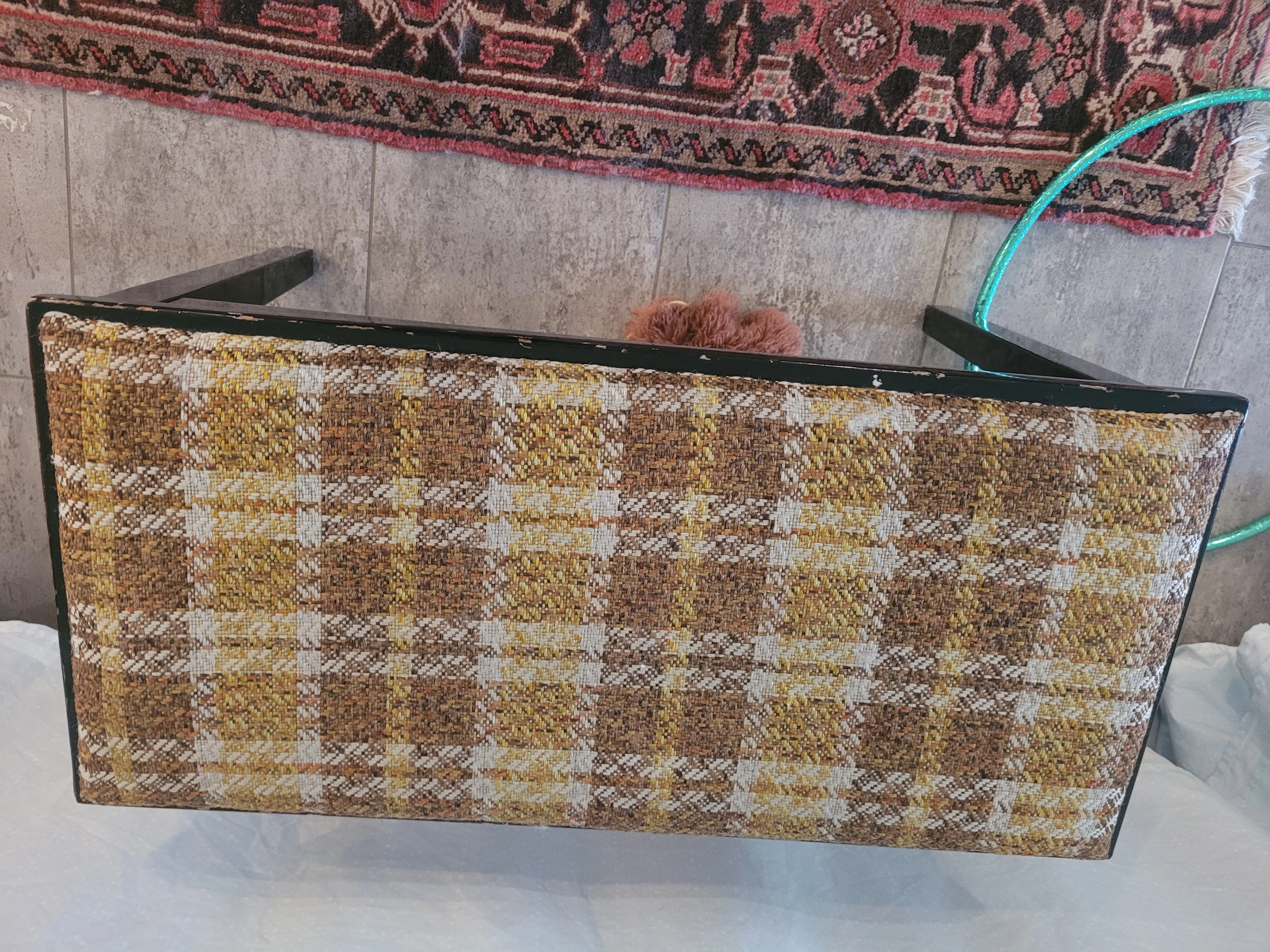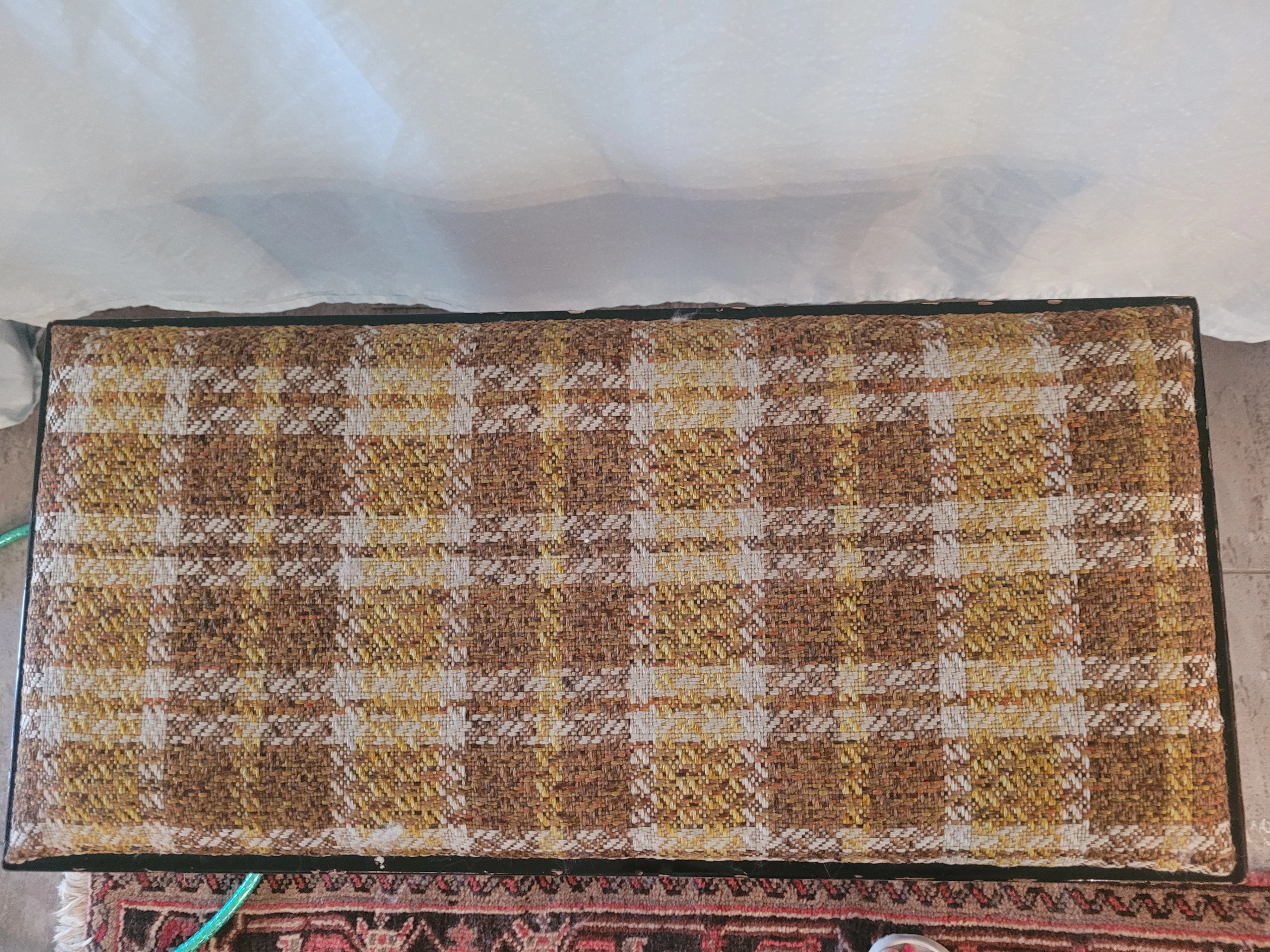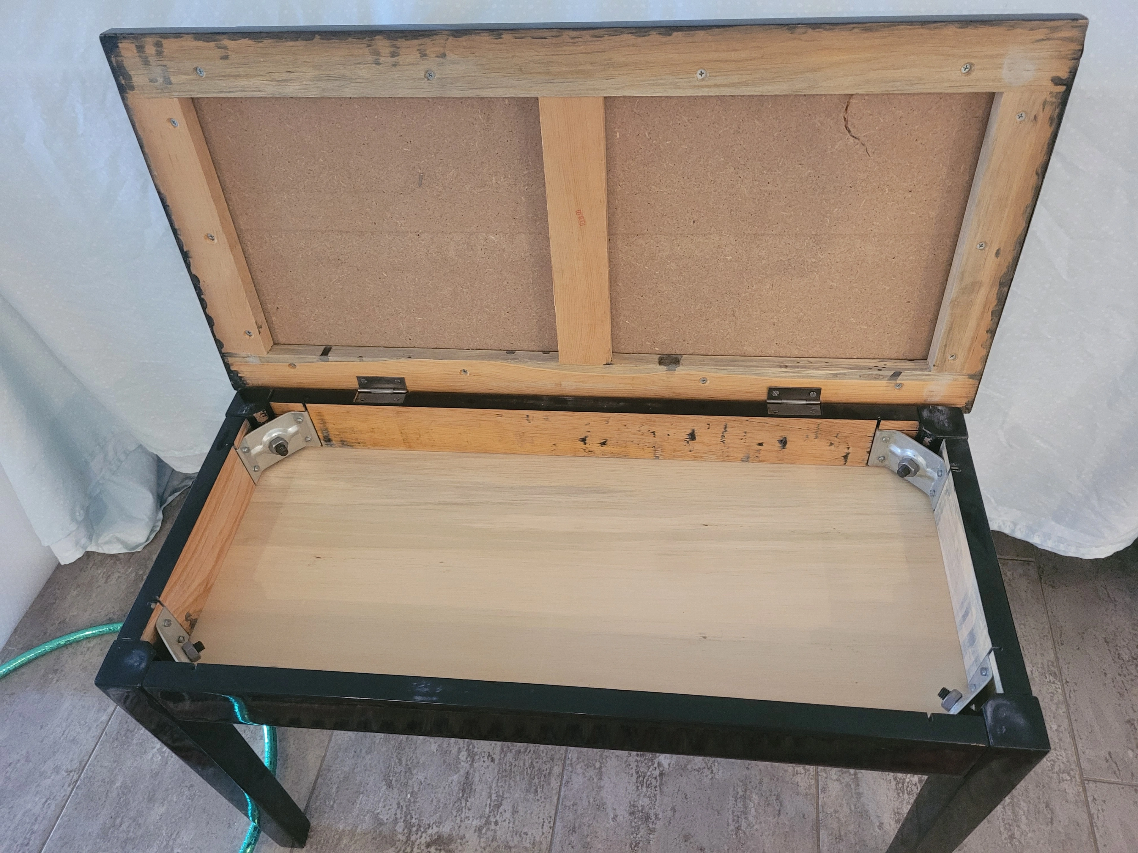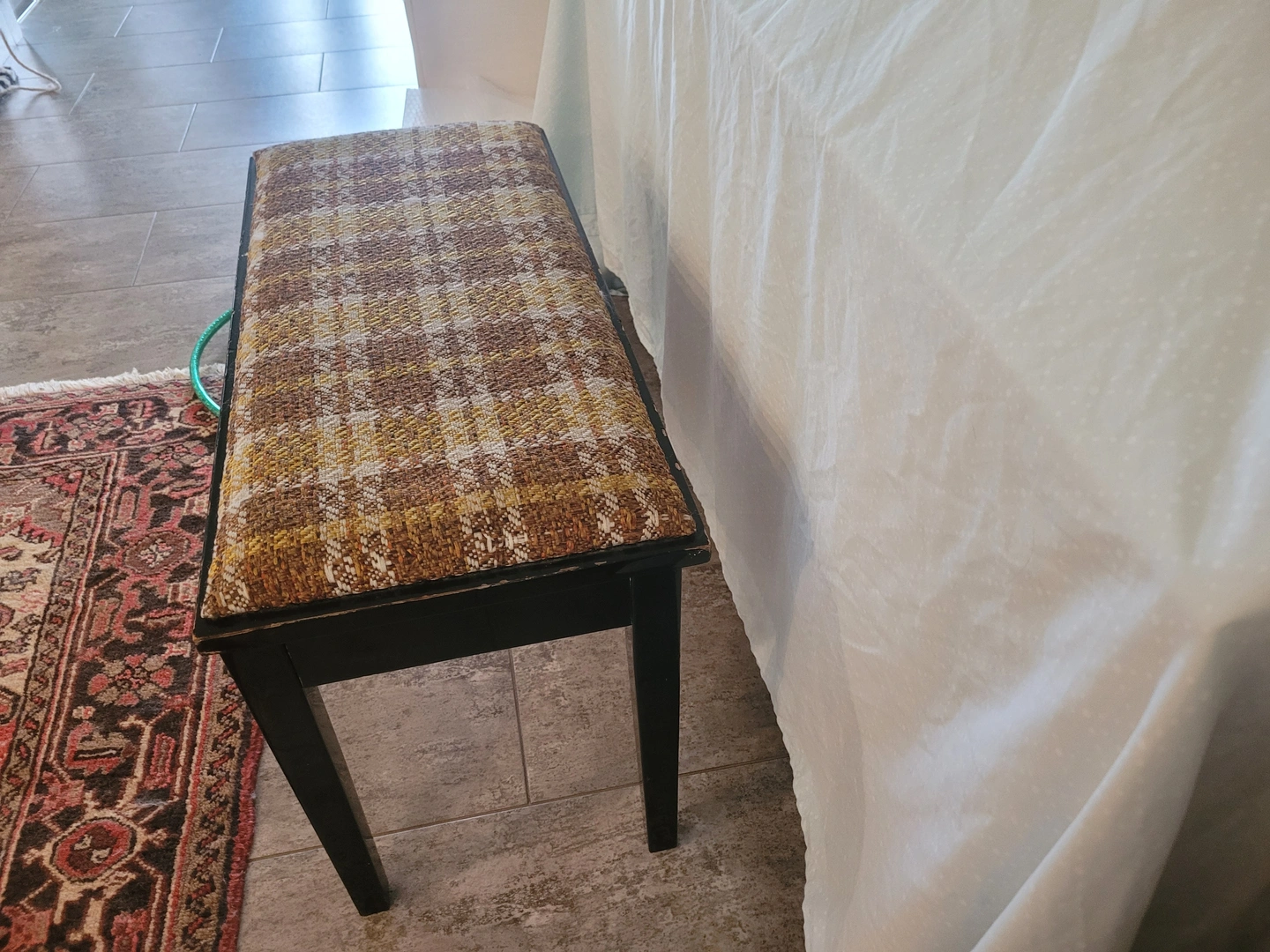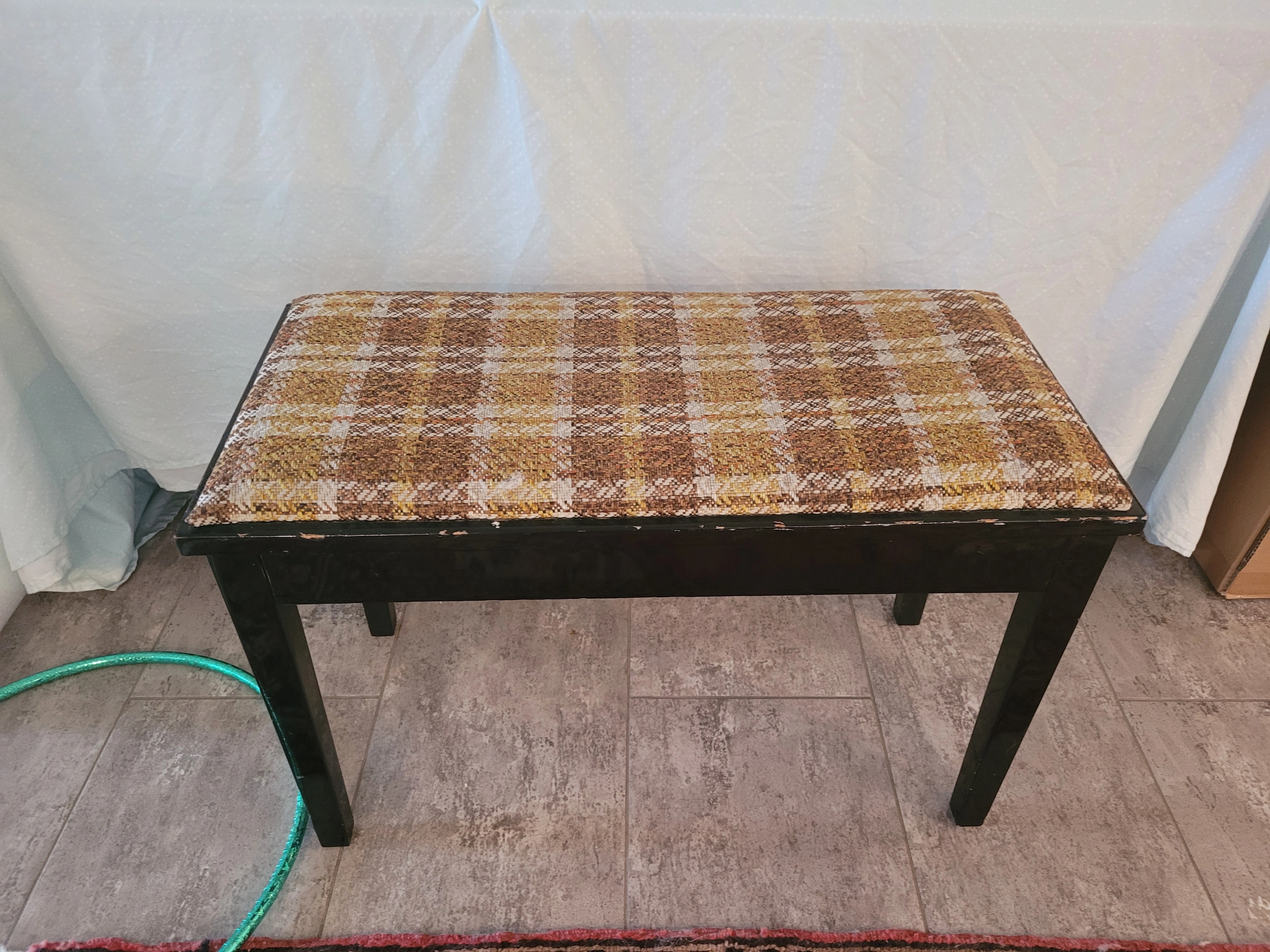 A nicely upholstered Piano bench, used but in good condition, very comfortable for long sits at the Piano. It has storage (check pictures) for music books and items related to music. Comes from a smoke-free home. Selling because the room decor has changed. Height from floor, 18 inches-Seat length, 30 inches, set width, 14 inches.
