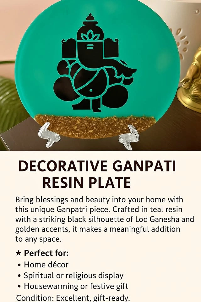 Bring blessings and beauty into your home with this unique Ganpati décor piece. Crafted in teal resin with a striking black silhouette of Lord Ganesha and golden accents, it makes a meaningful addition to any space. ✨ Perfect for: - Home décor - Spiritual or religious display - Housewarming or festive gift Condition: Excellent, gift-ready. Selling for $25 OBO Pickup: Oakville, ON
